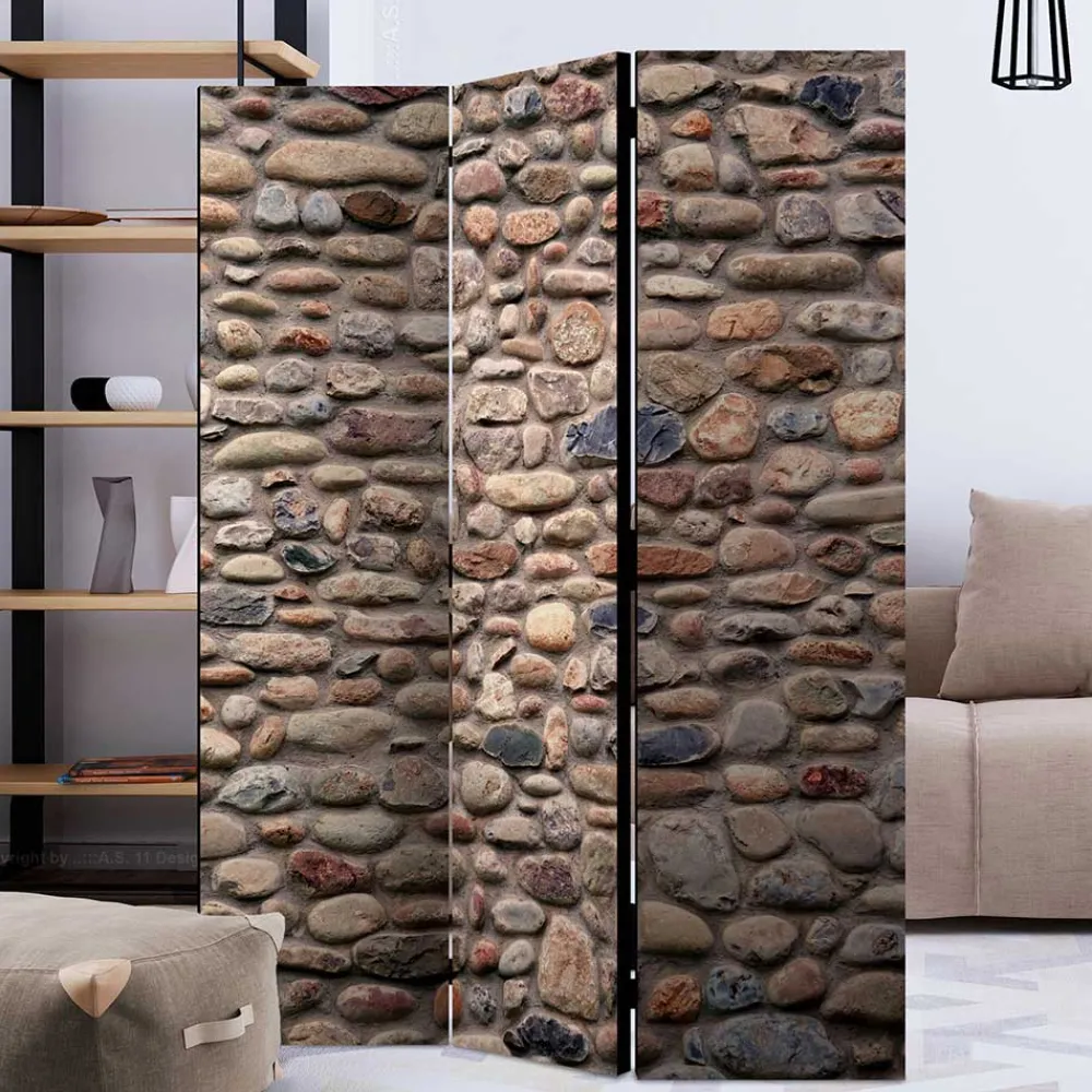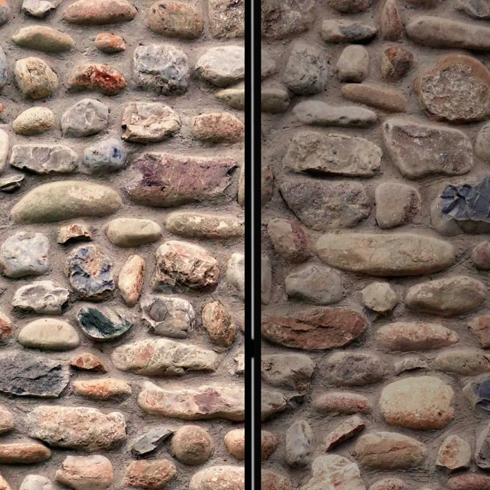 in Steinmauer Optik und Braun und Grautönen