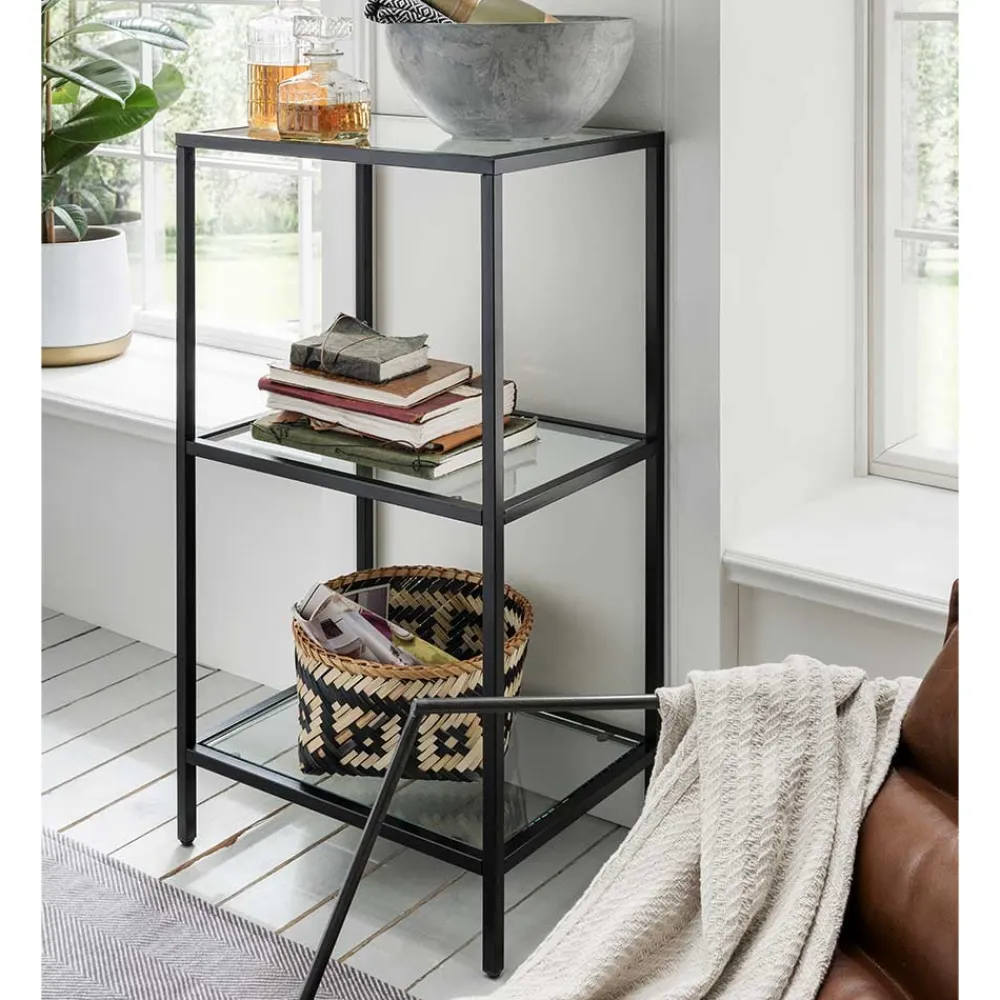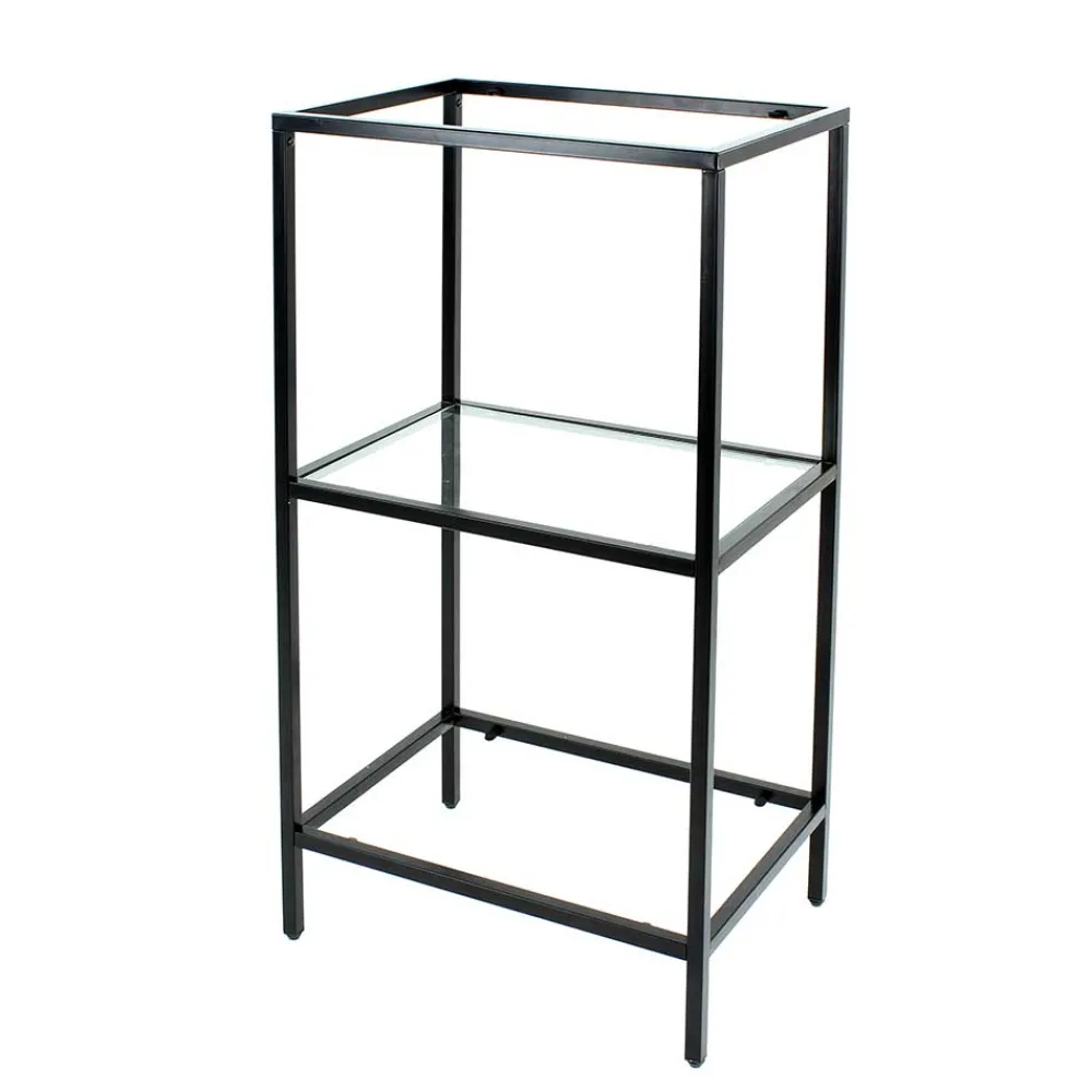 - Drei Glasböden bieten Platz für Bücher oder Deko