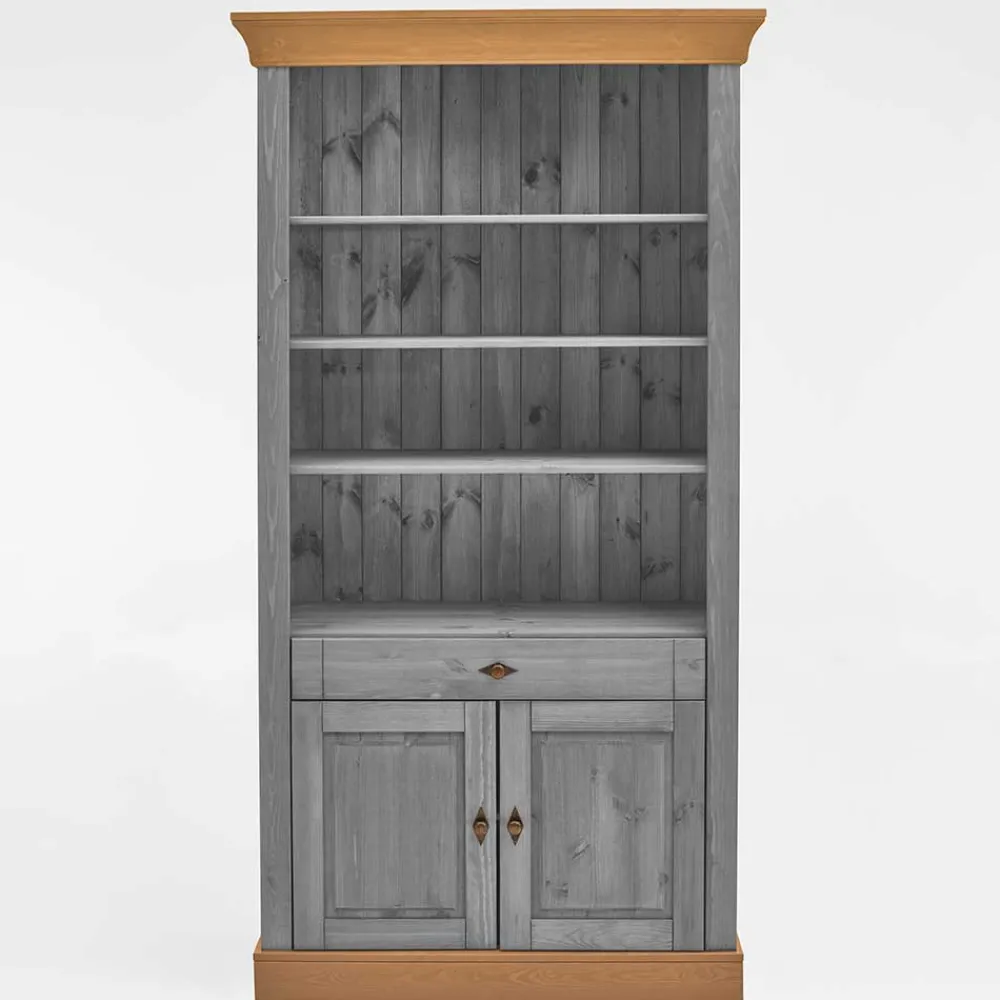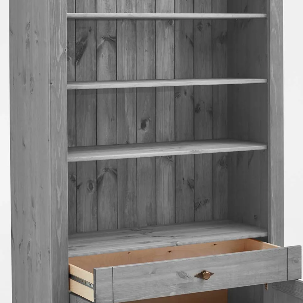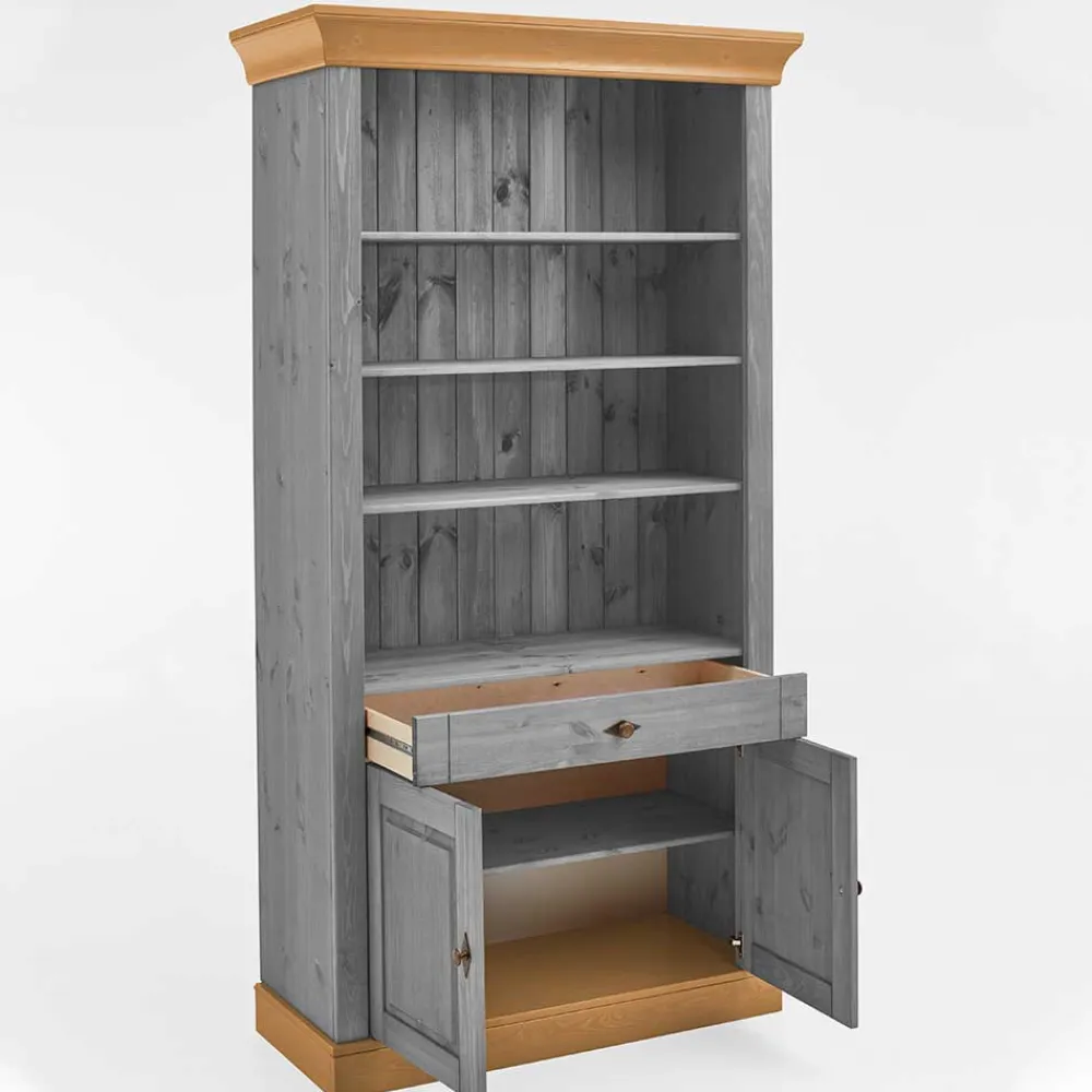 - Trendstarkes Wohnzimmerregal in Grau und Kiefer Laugenfarben