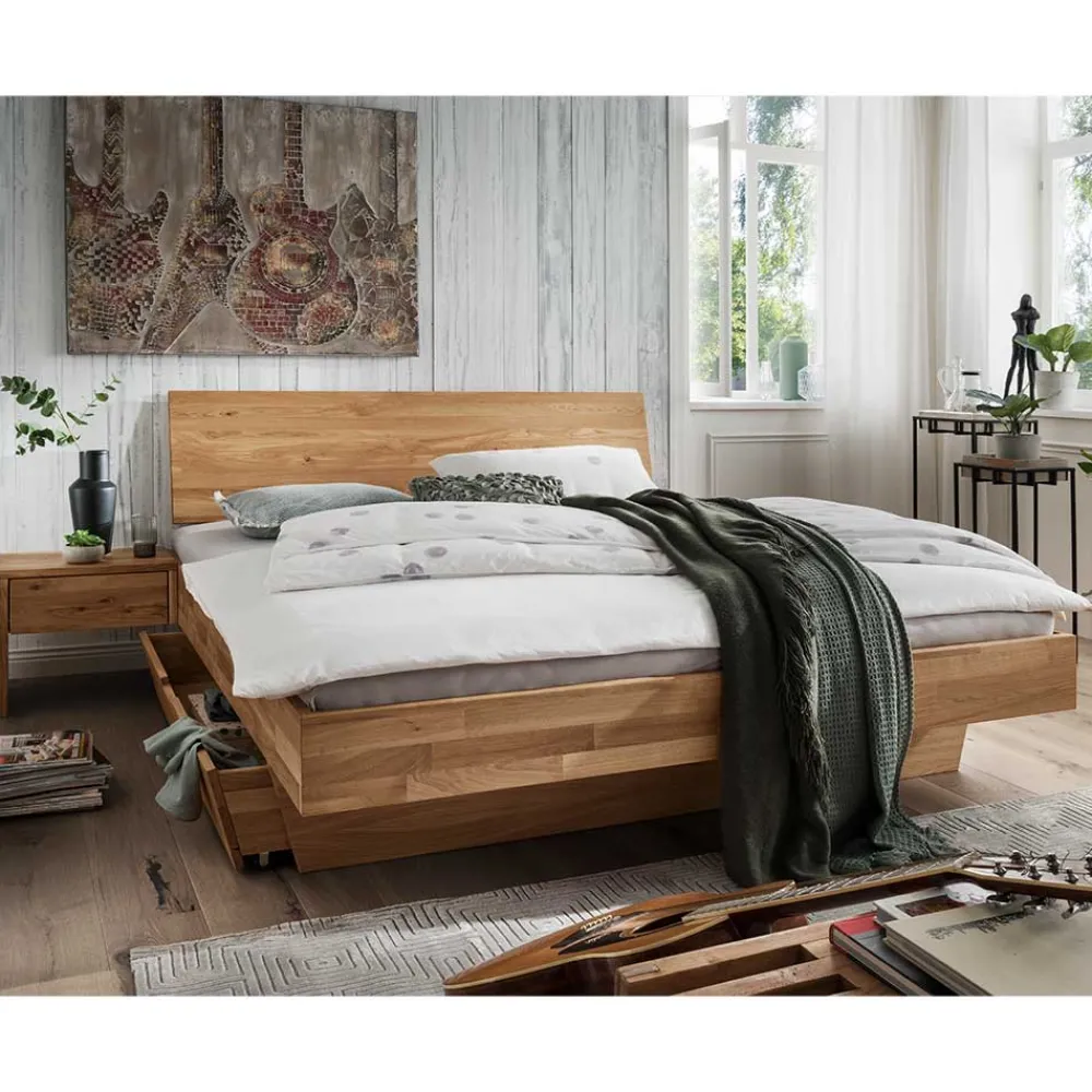 - Rustikales Bett mit Konsolen in Wildeichefarben