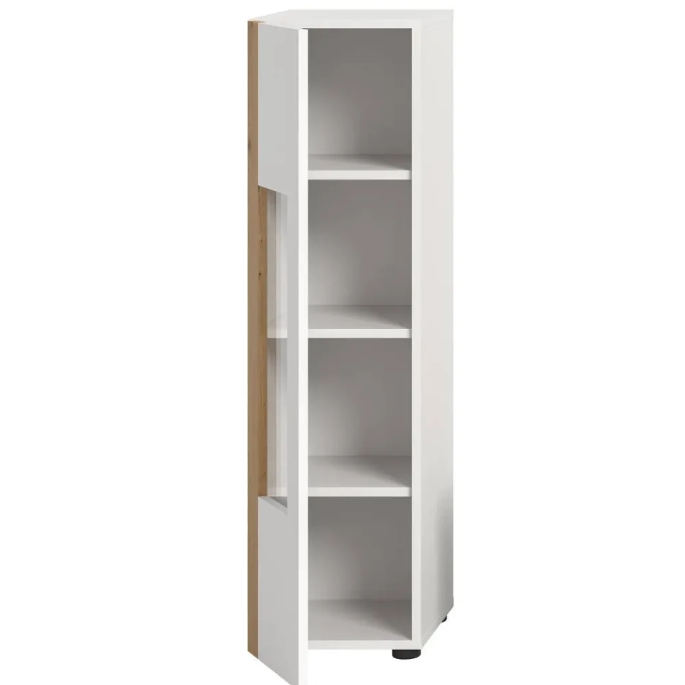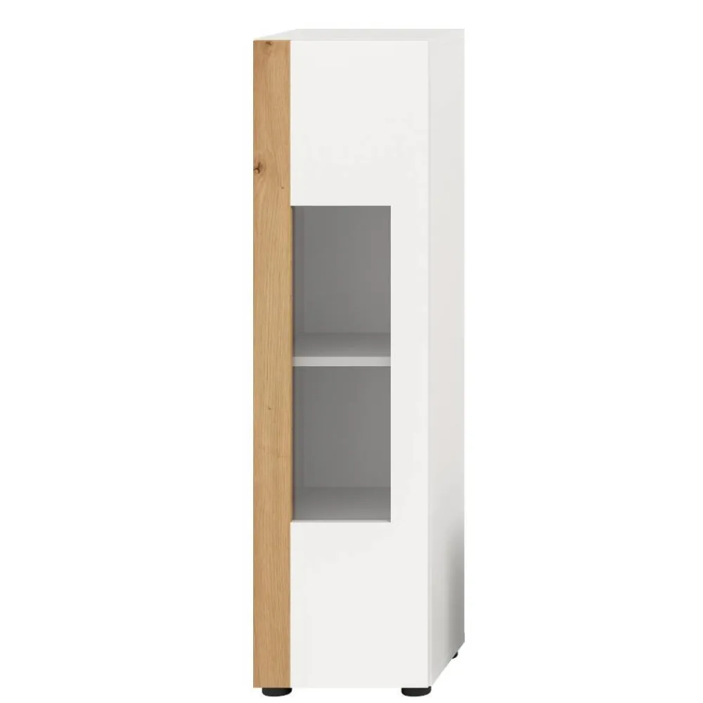 - Kompakte Vitrine in Weiß und Wildeichefarben