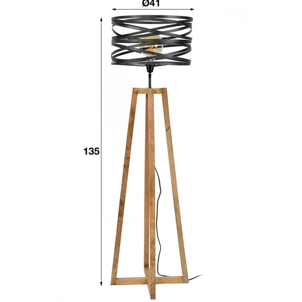 - Formvollendete Stehleuchte in Dunkelgrau und Holz Naturfarben