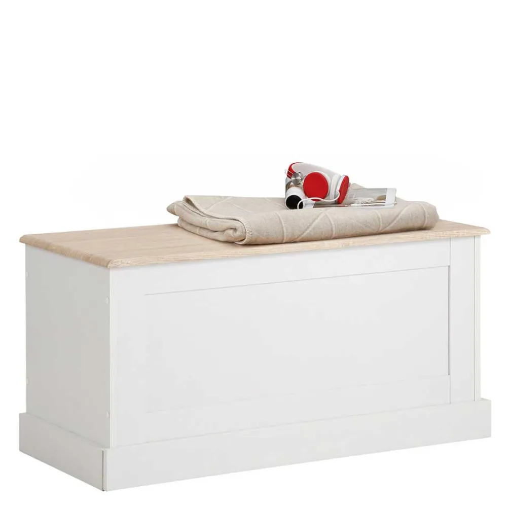 - Schlichte Truhe in Weiß und Eichefarben