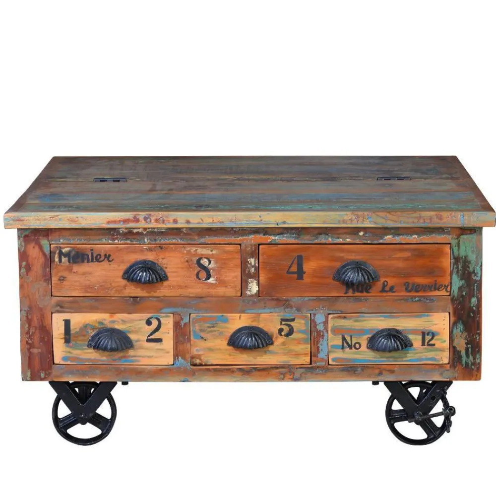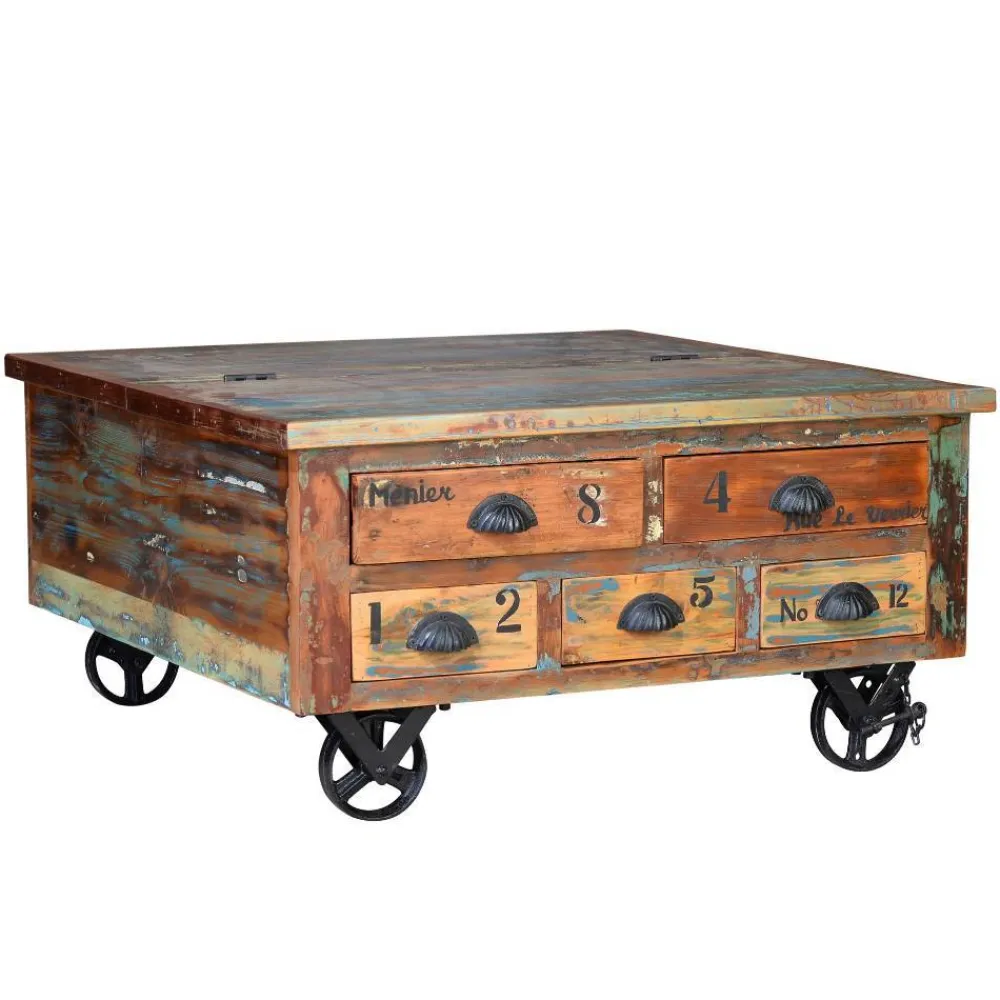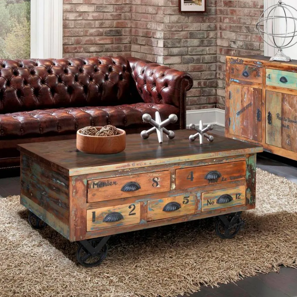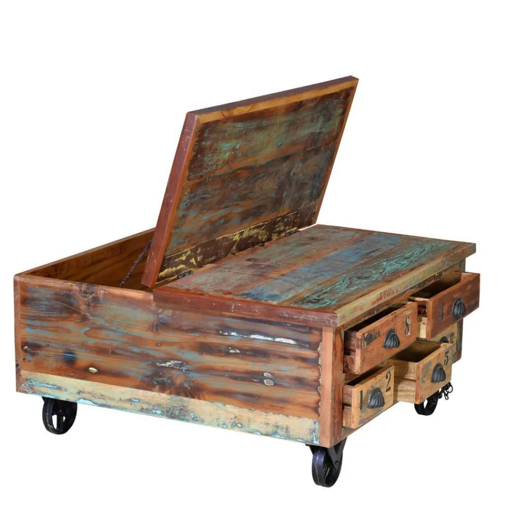 - Markanter Couchtisch in Holz Bunt und Antikschwarz