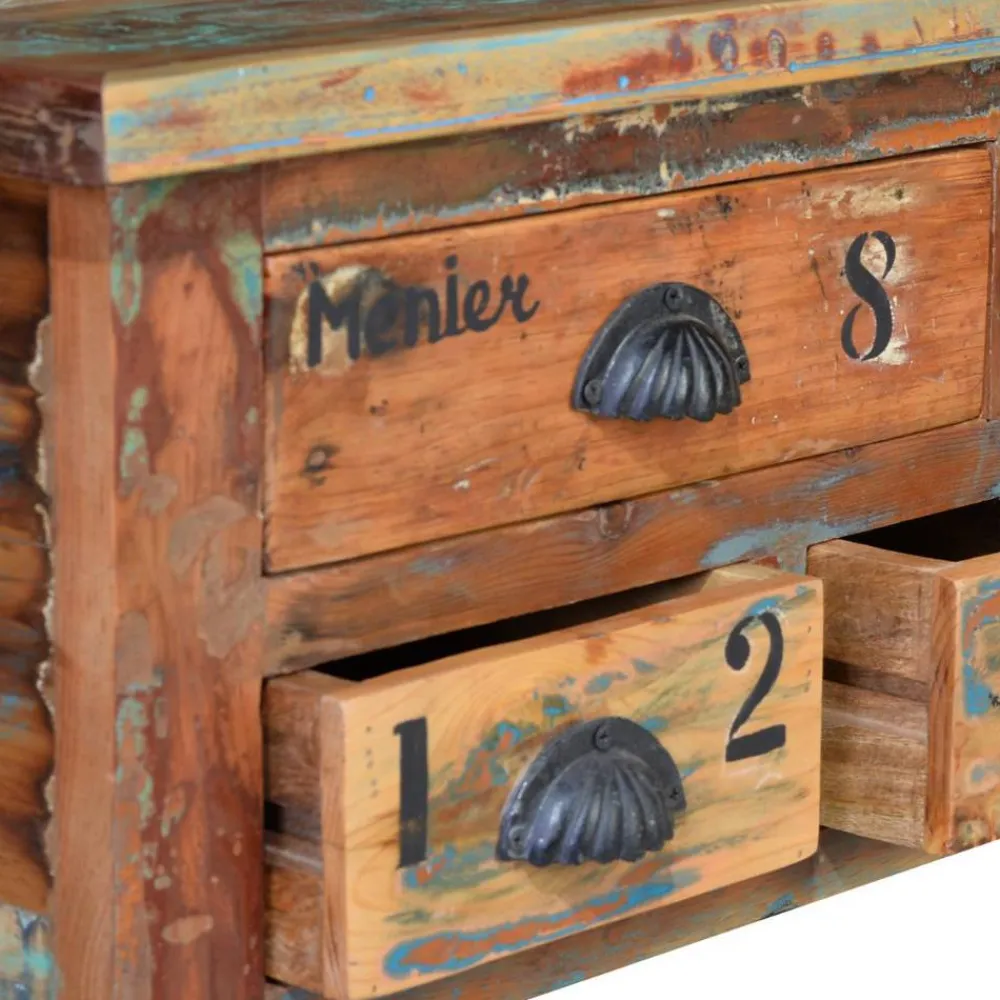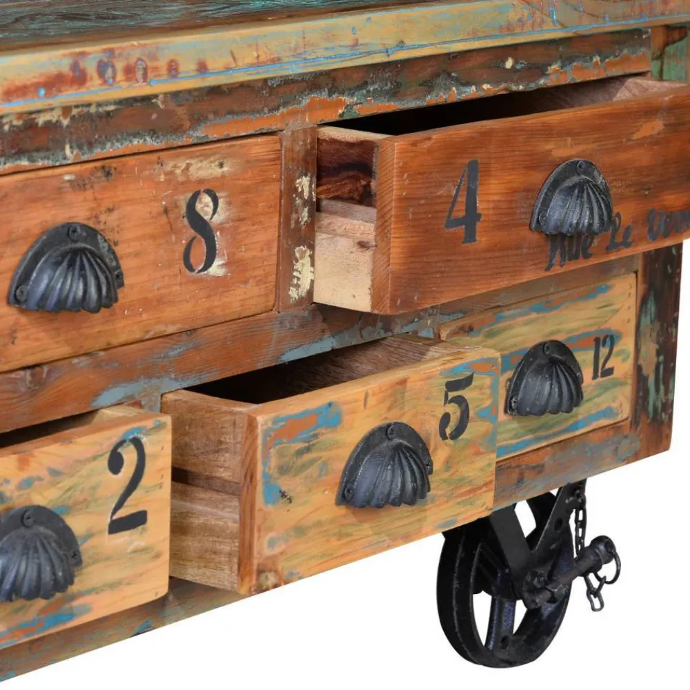 - Aus massivem Recyclingholz und Eisen hergestellt