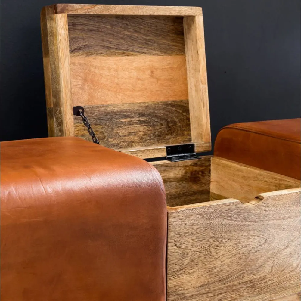 - Aus Echtleder und Mangobaum Massivholz hergestellt