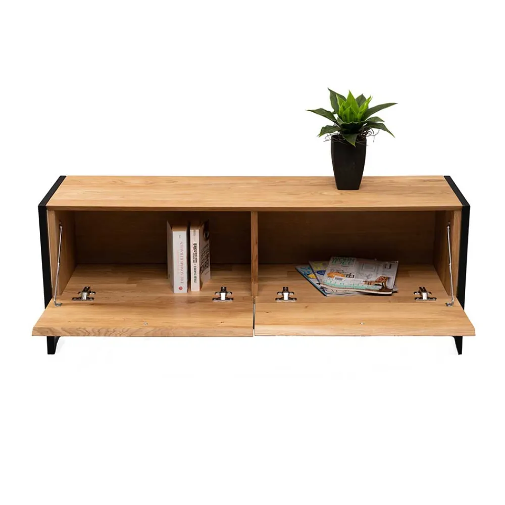 - Kompaktes TV Lowboard in Wildeichefarben und Schwarz