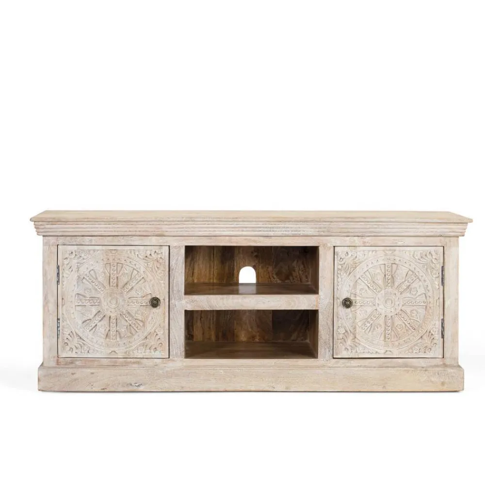 - Hübsches TV-Lowboard in Mangoholz Sandfarben