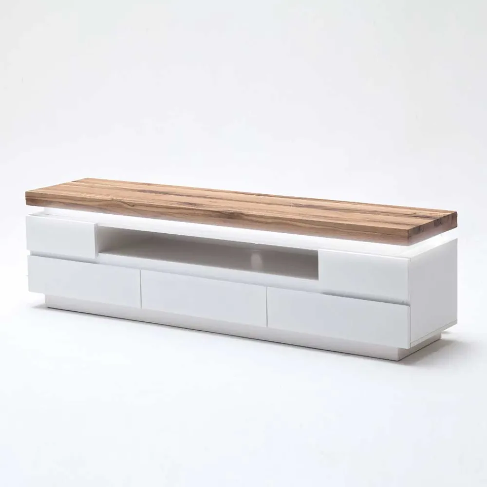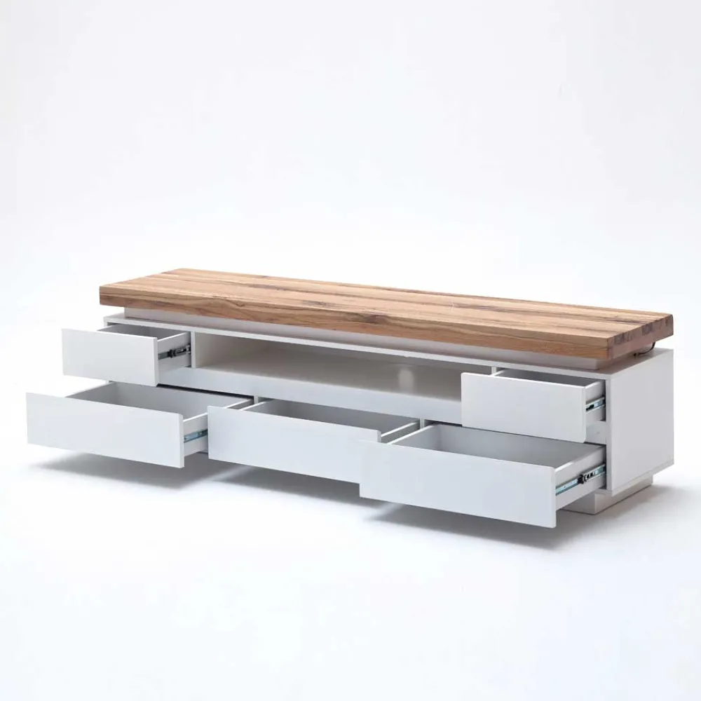 - Zeitgemäßes Lowboard in Weiß und Wildeichefarben