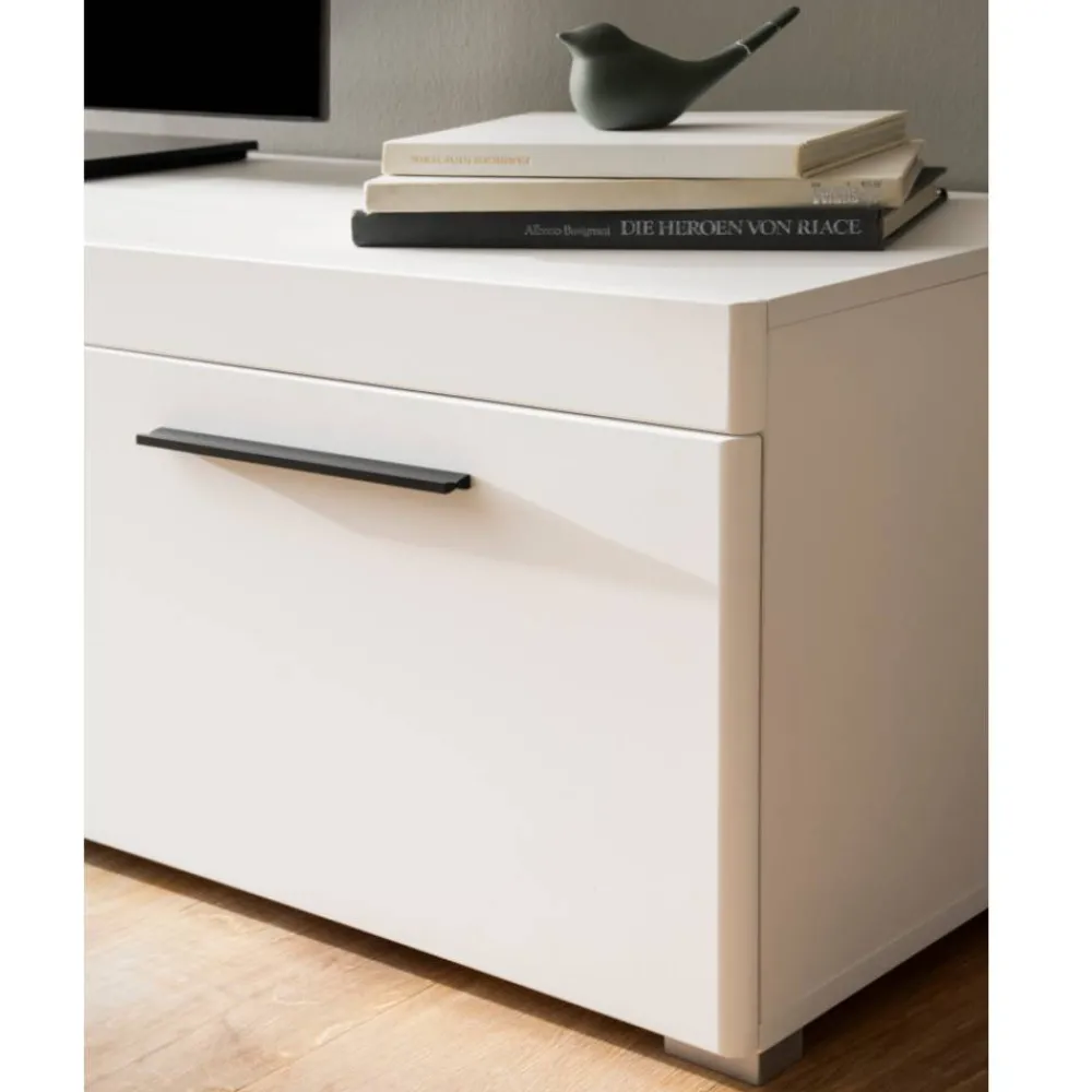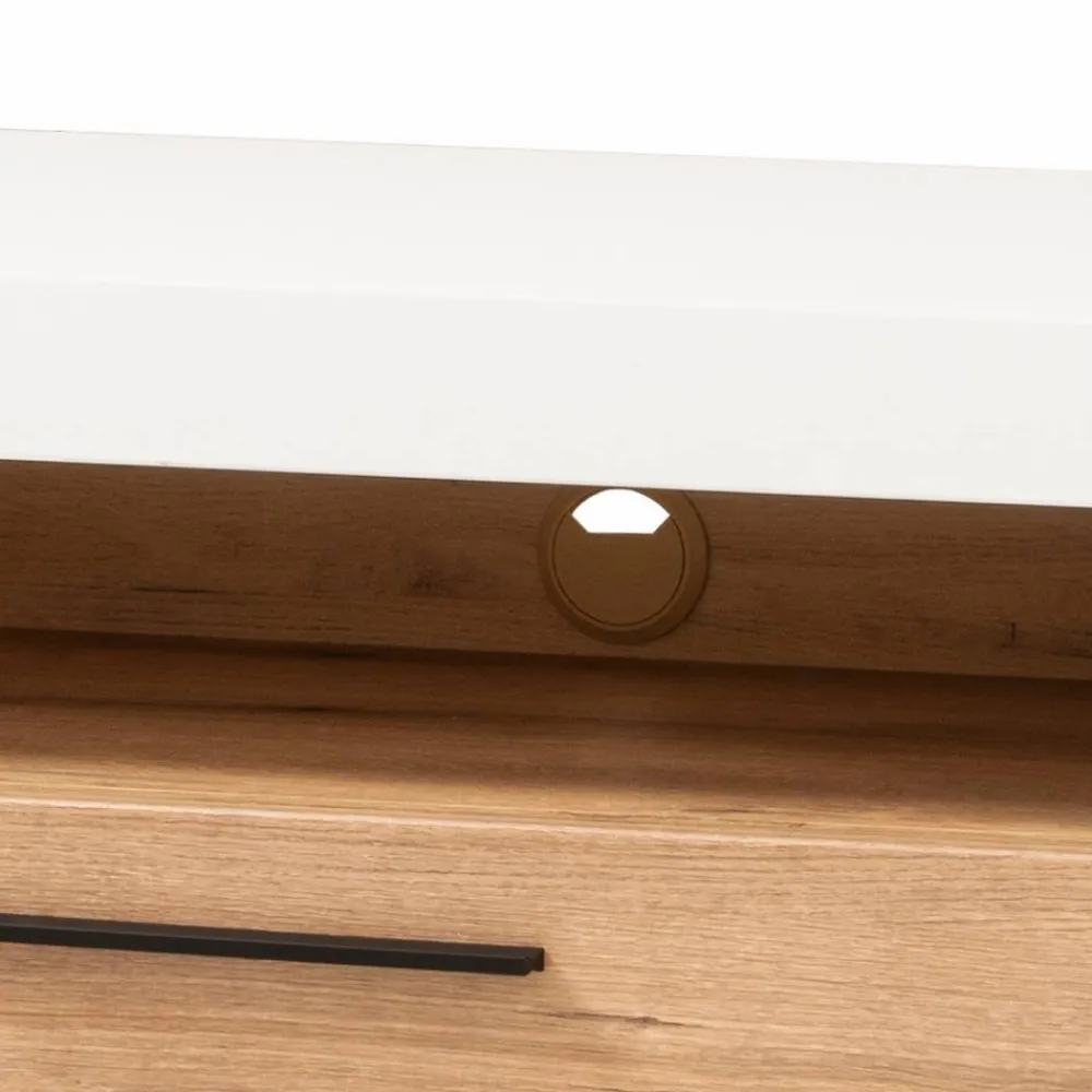- Elegantes TV Board in Weiß, Weiß matt und Eichefarben