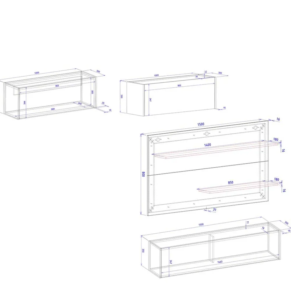 - Zwei Ablageböden, Breite 140 und 85 cm, Tiefe je 18 cm