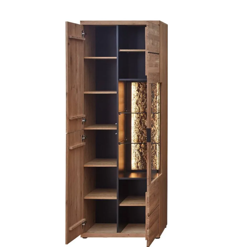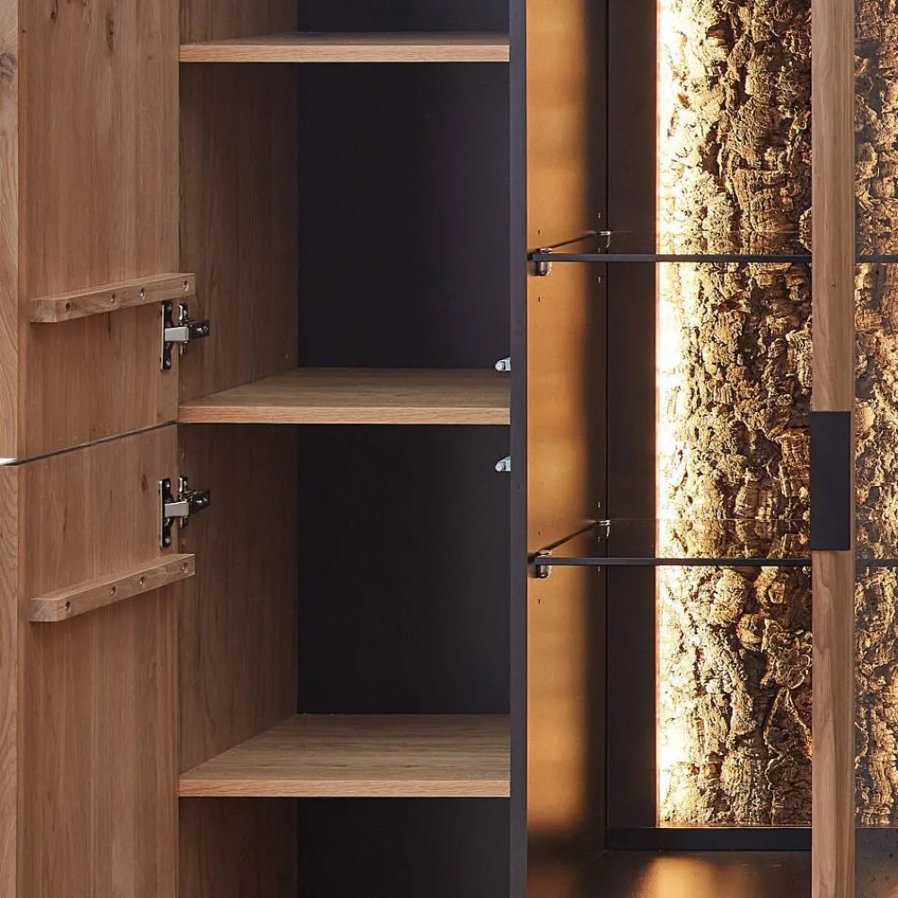 - Klasse Wohnwand in Wildeiche Bianco und Anthrazit