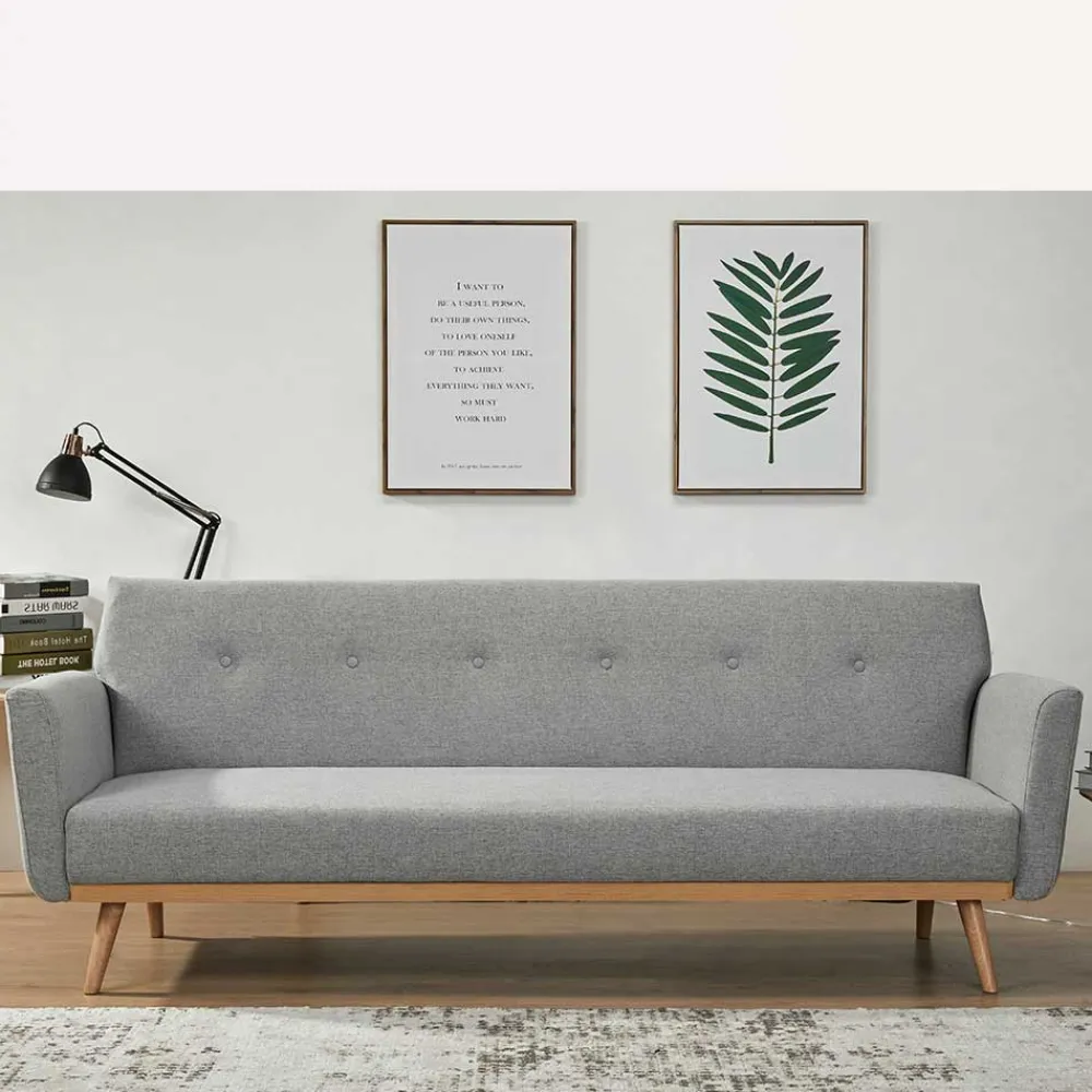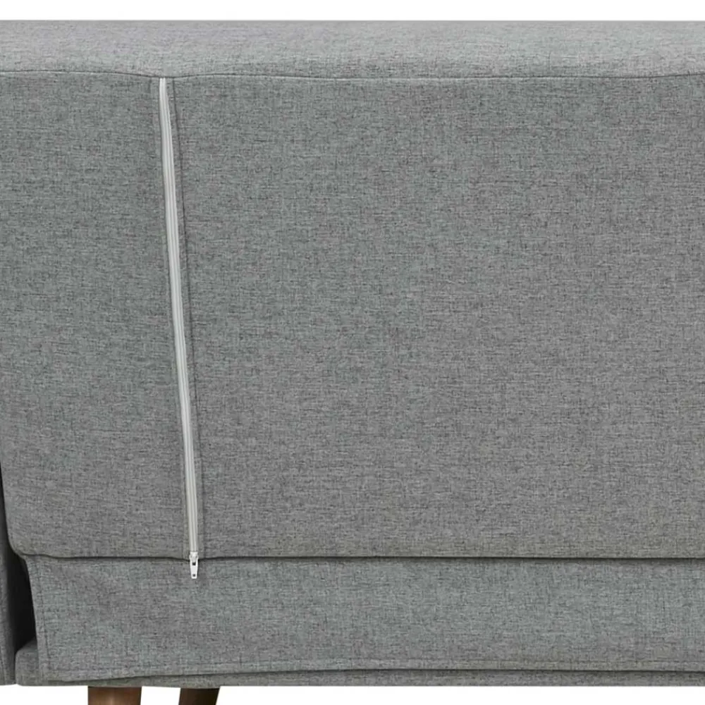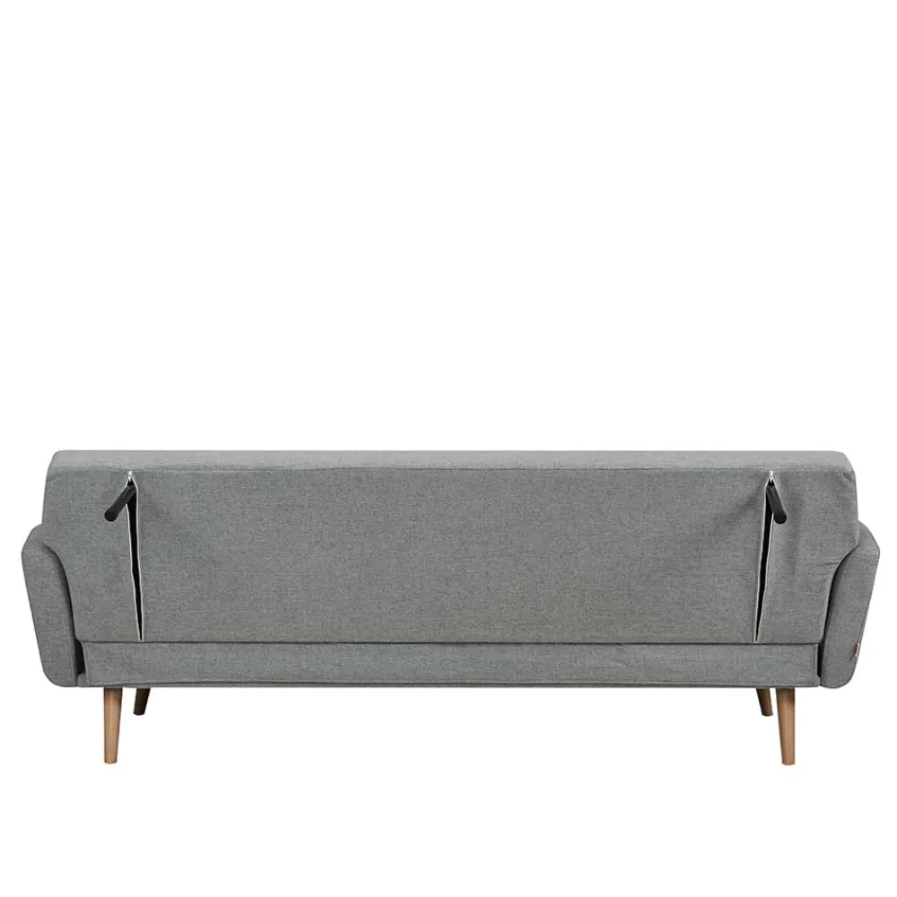 - Perfektes Schlafsofa in Hellgrau und Holz Naturfarben