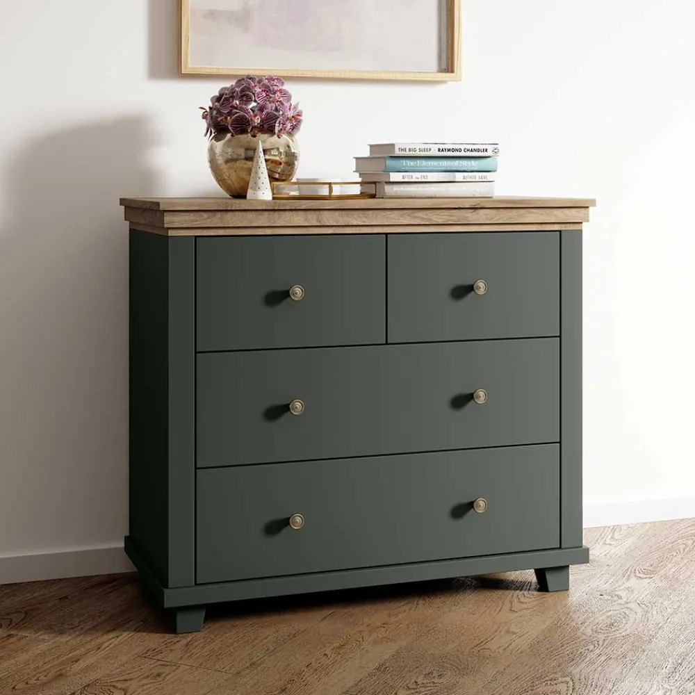 - Hübsche Kommode in Dunkelgrün und verwitterter Holzoptik