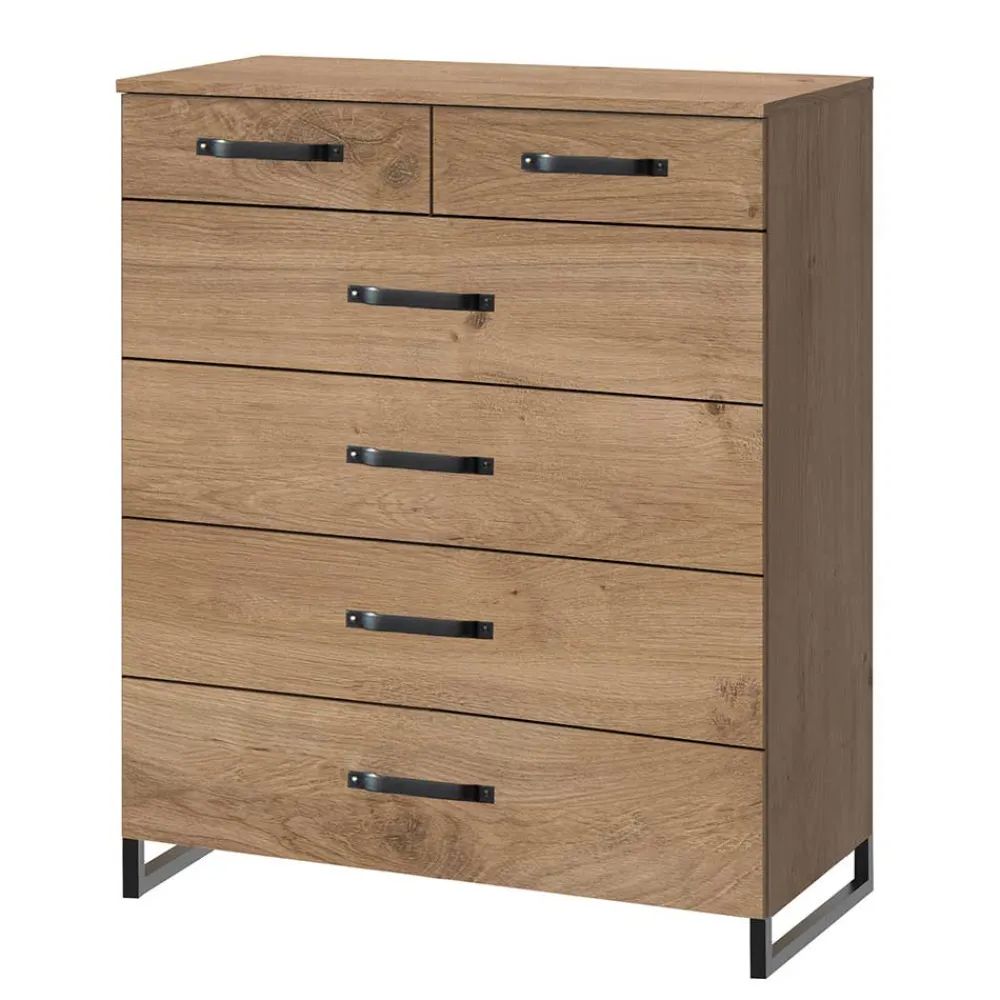 - Geräumige Kommode in Eichefarben und Schwarz