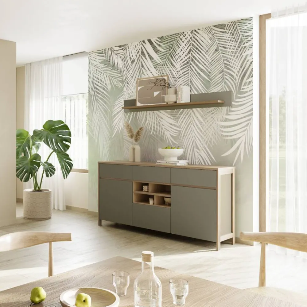 - Trendiges Wandboard in Eukalyptus- und Eichefarben
