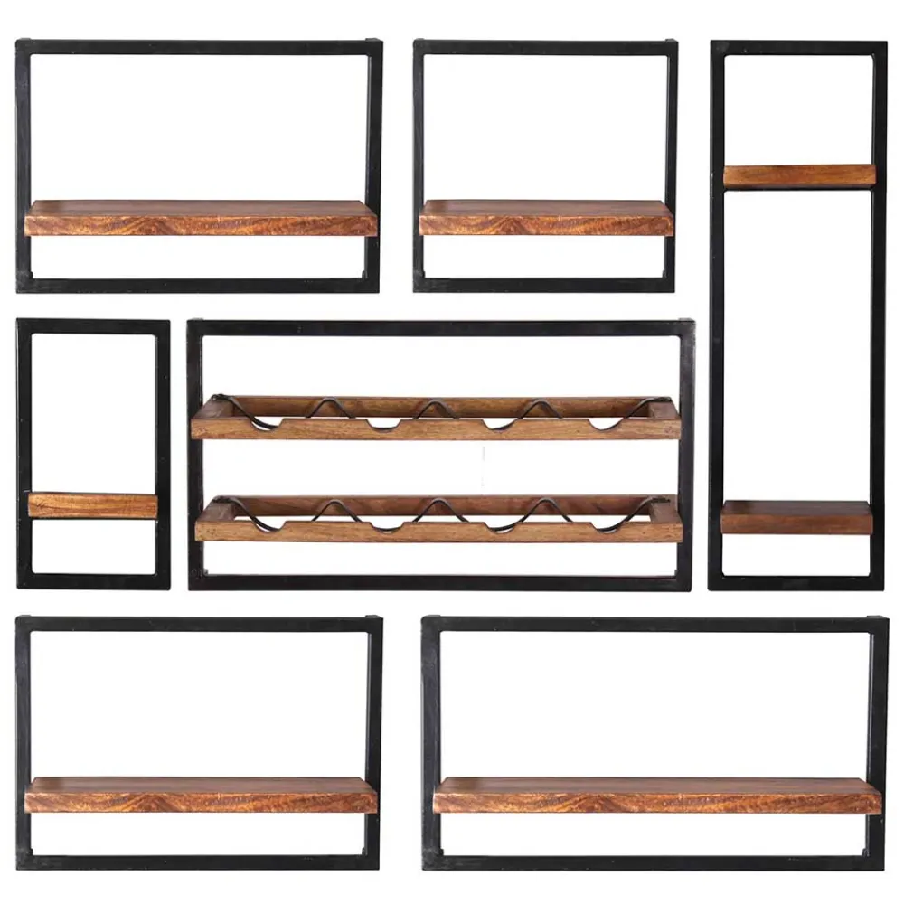 - Beeindruckendes Regal Set in Mangoholz Naturfarben und Antikschwarz