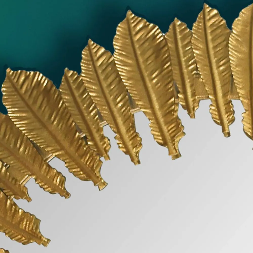 - Plastisch gestalteter Rahmen in Goldfarben mit Feder Motiv aus lackiertem Eisen