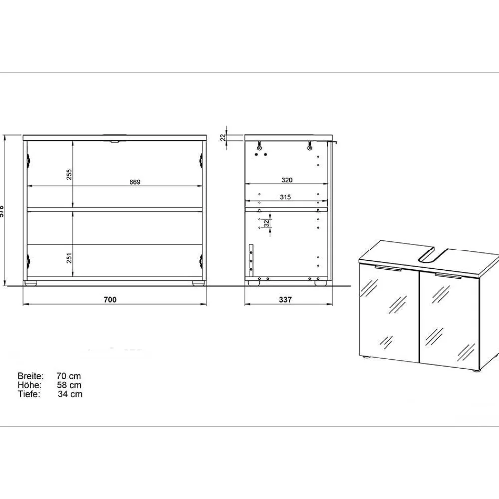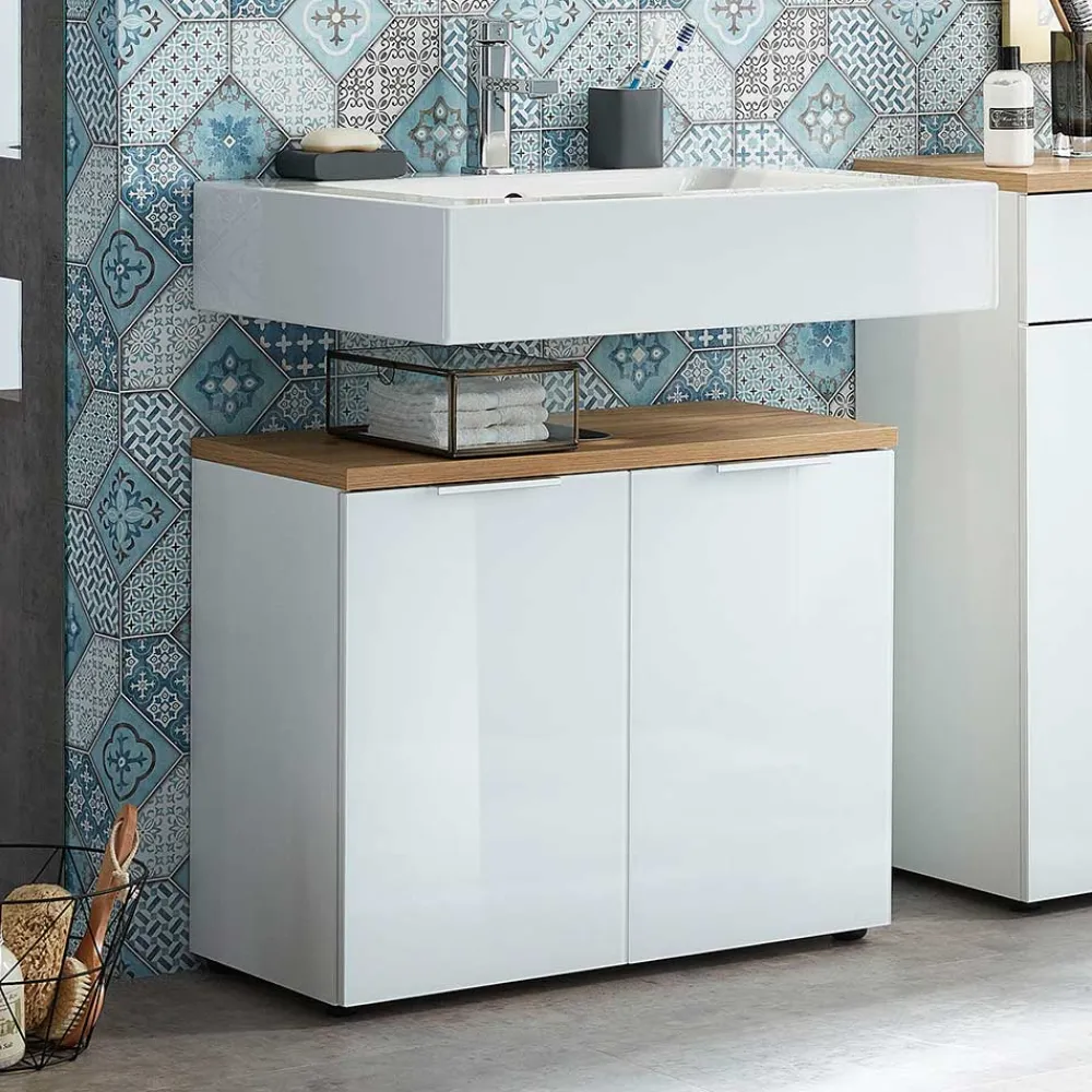 - Fantastischer Bad Unterbeckenschrank in Weiß und Eichefarben