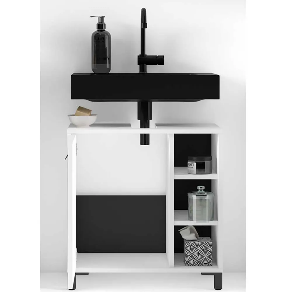 - Klasse Bad-Unterschrank in Weiß mit Schwarz