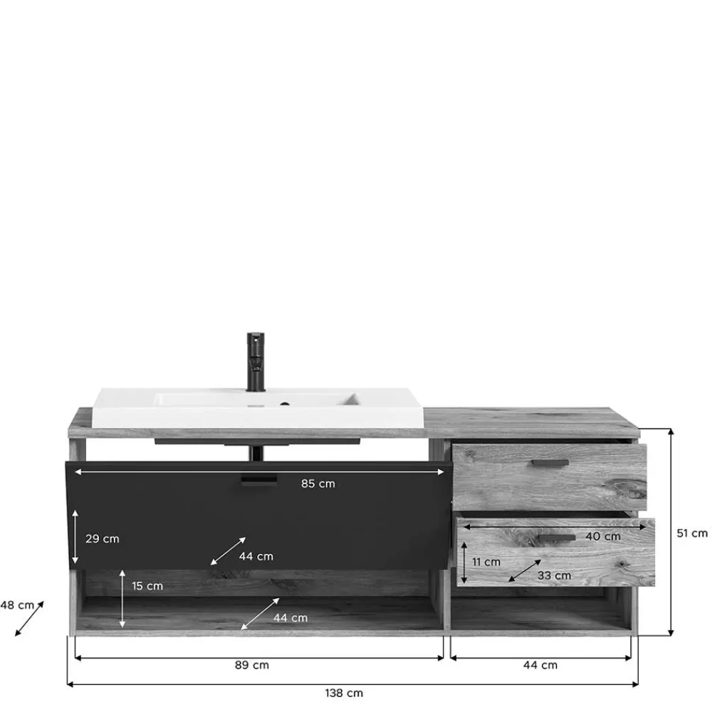 - Attraktiver Waschbeckenschrank in Dunkelgrau und Wildeichefarben