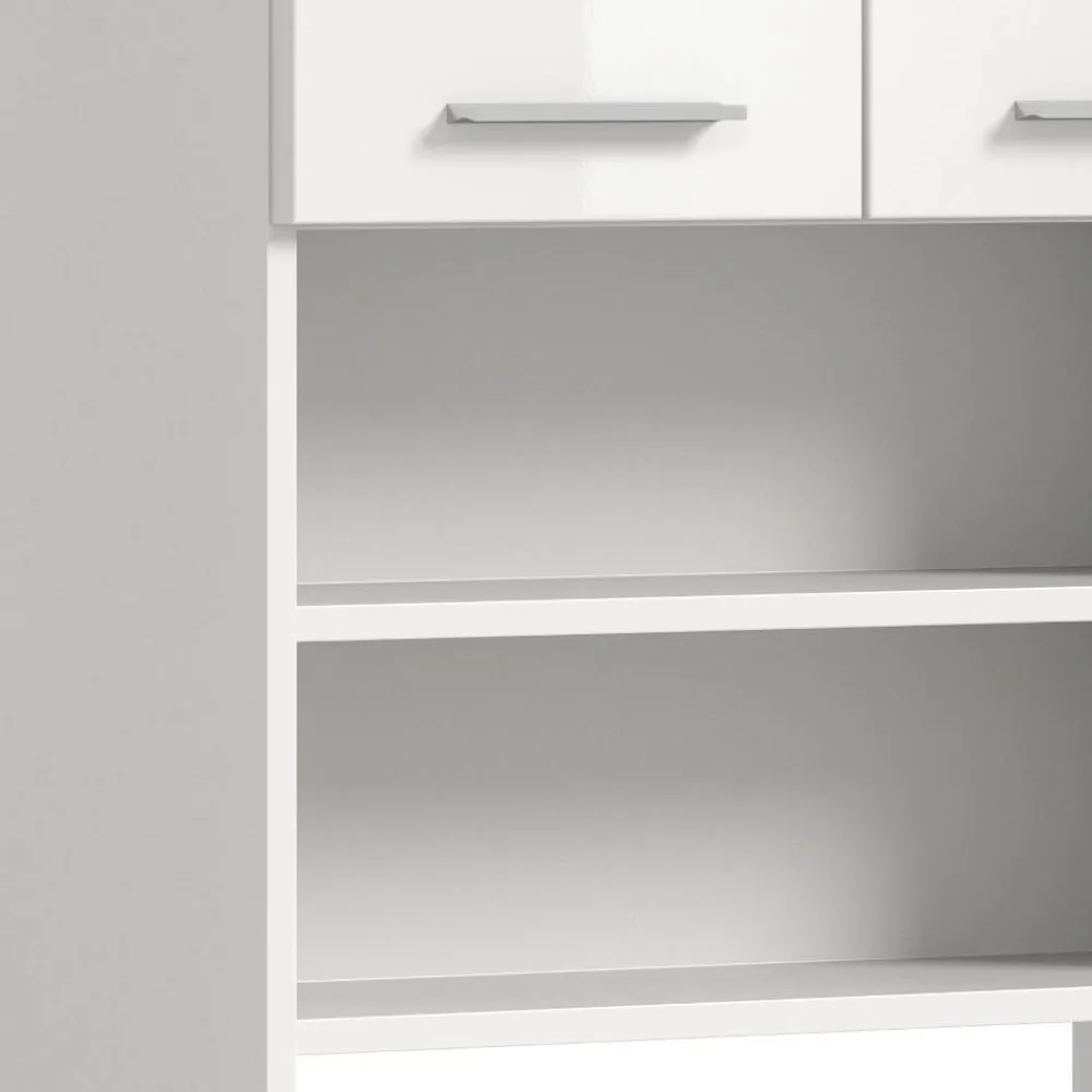 - Mit zwei Einlegeböden und zwei offenen Fächern