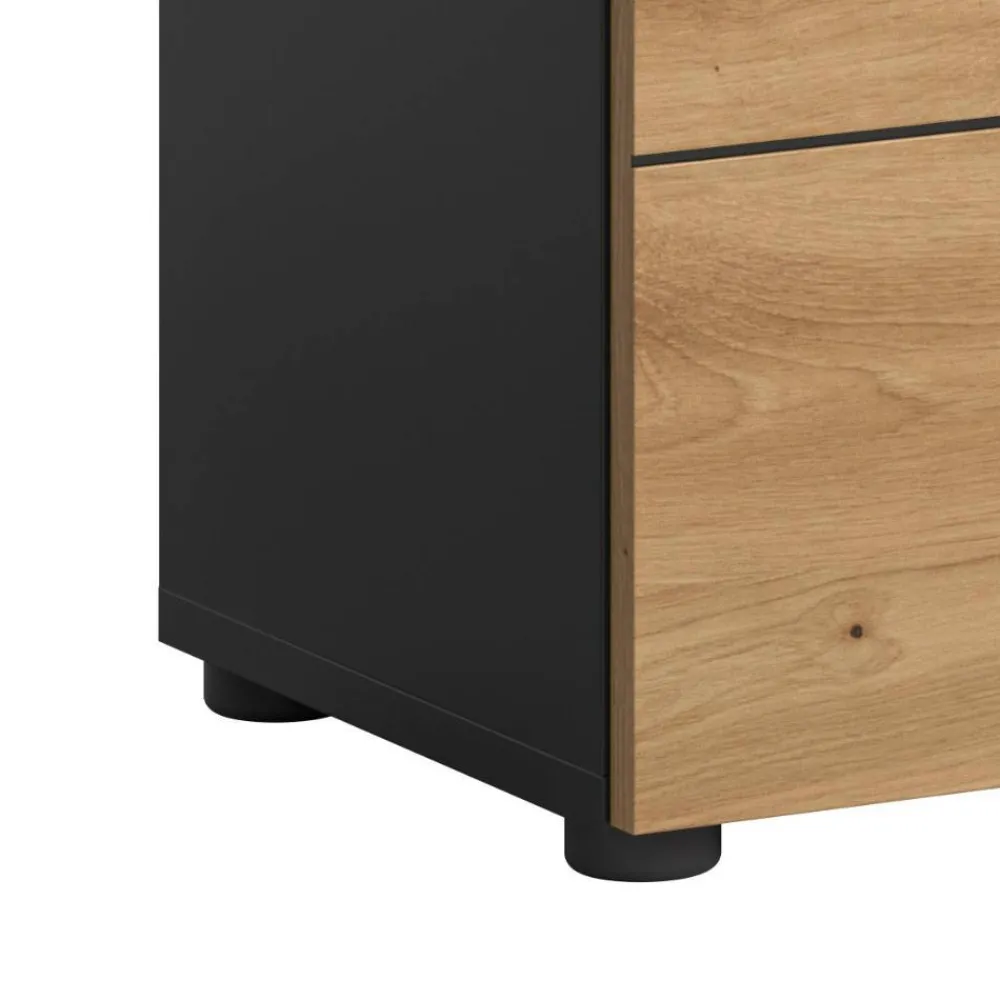- Oberflächen pflegeleicht in Holzoptik Wildeiche und Grau melaminbeschichtet