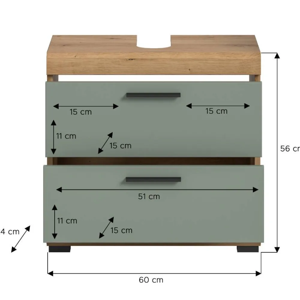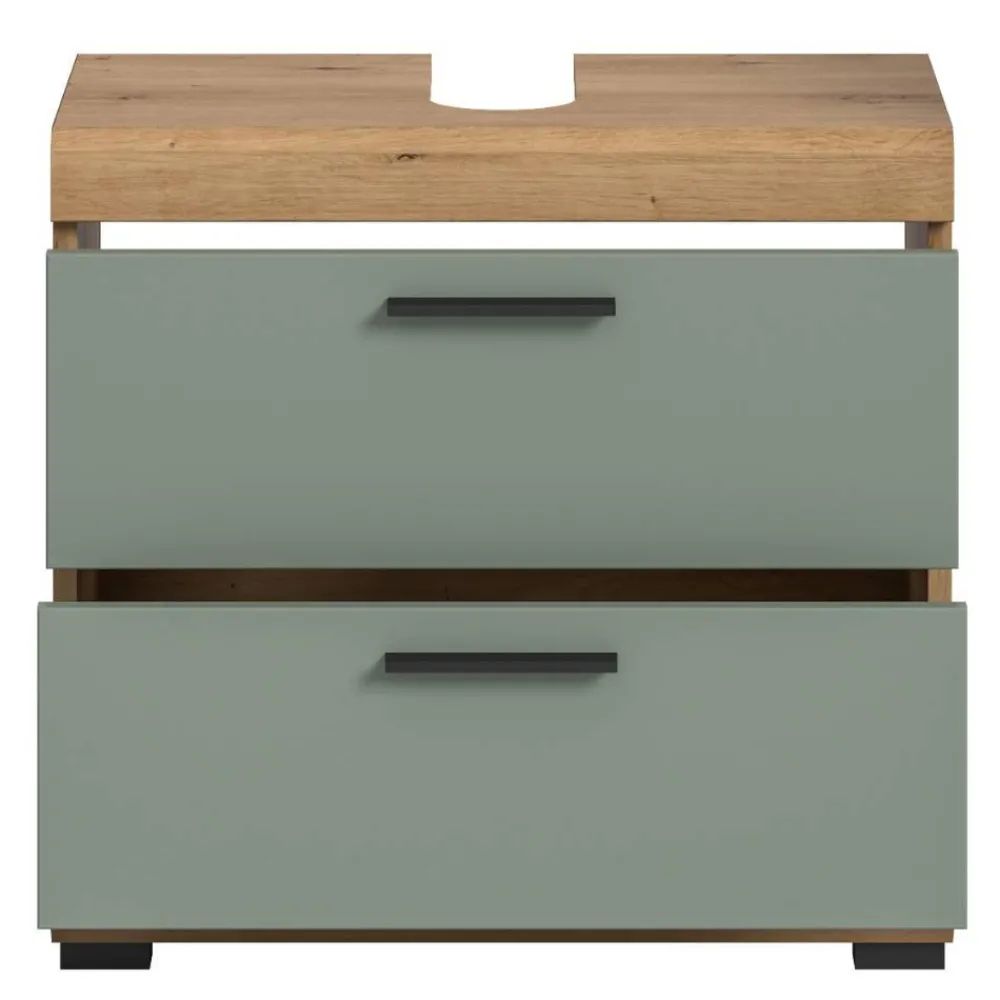 - Kompakter Waschbeckenschrank in Salbei und Wildeichefarben