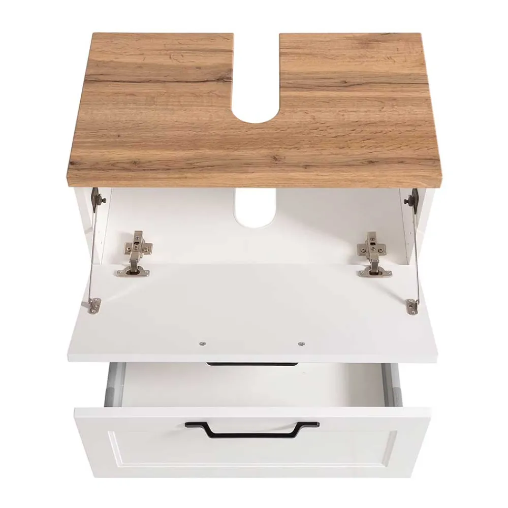 - Top Waschbeckenunterschrank in Weiß und Wildeichefarben