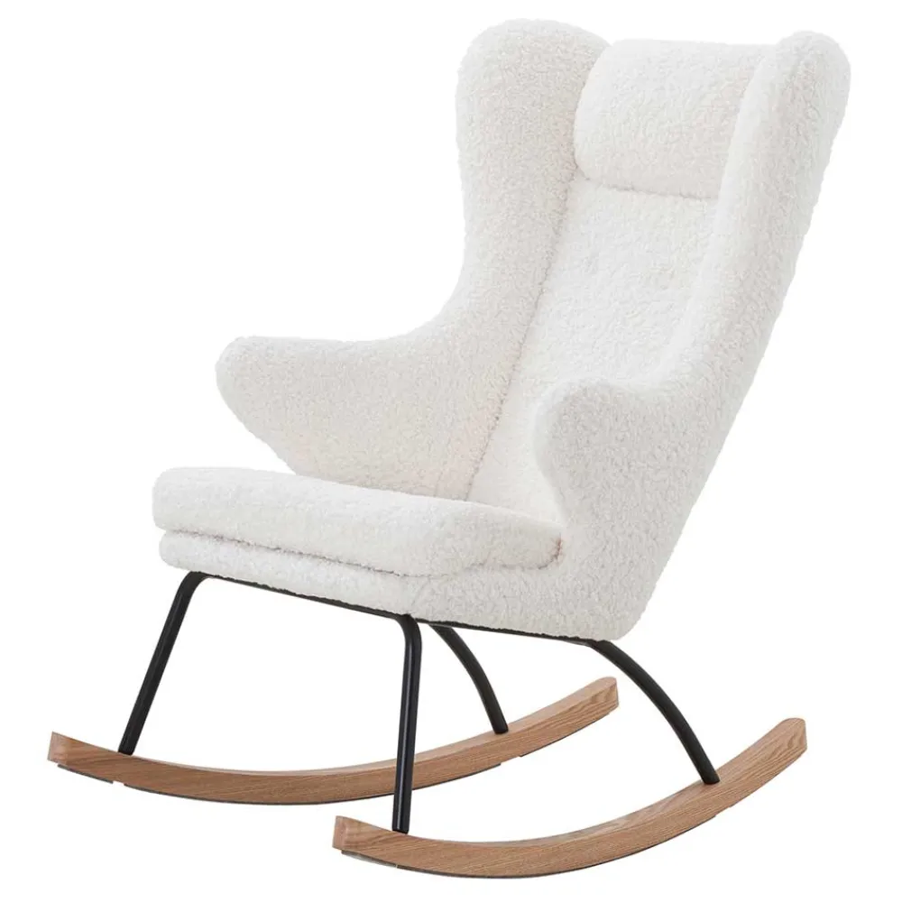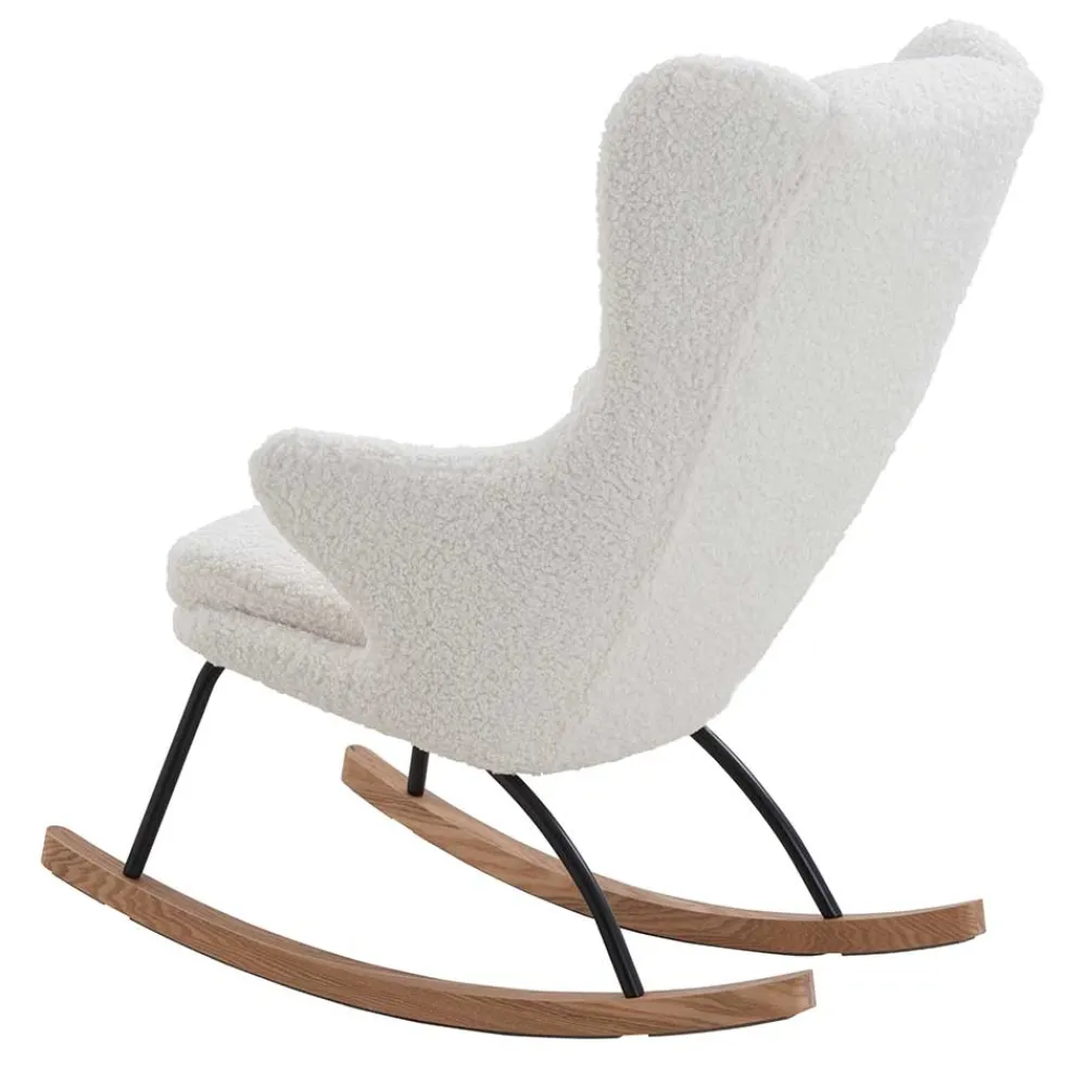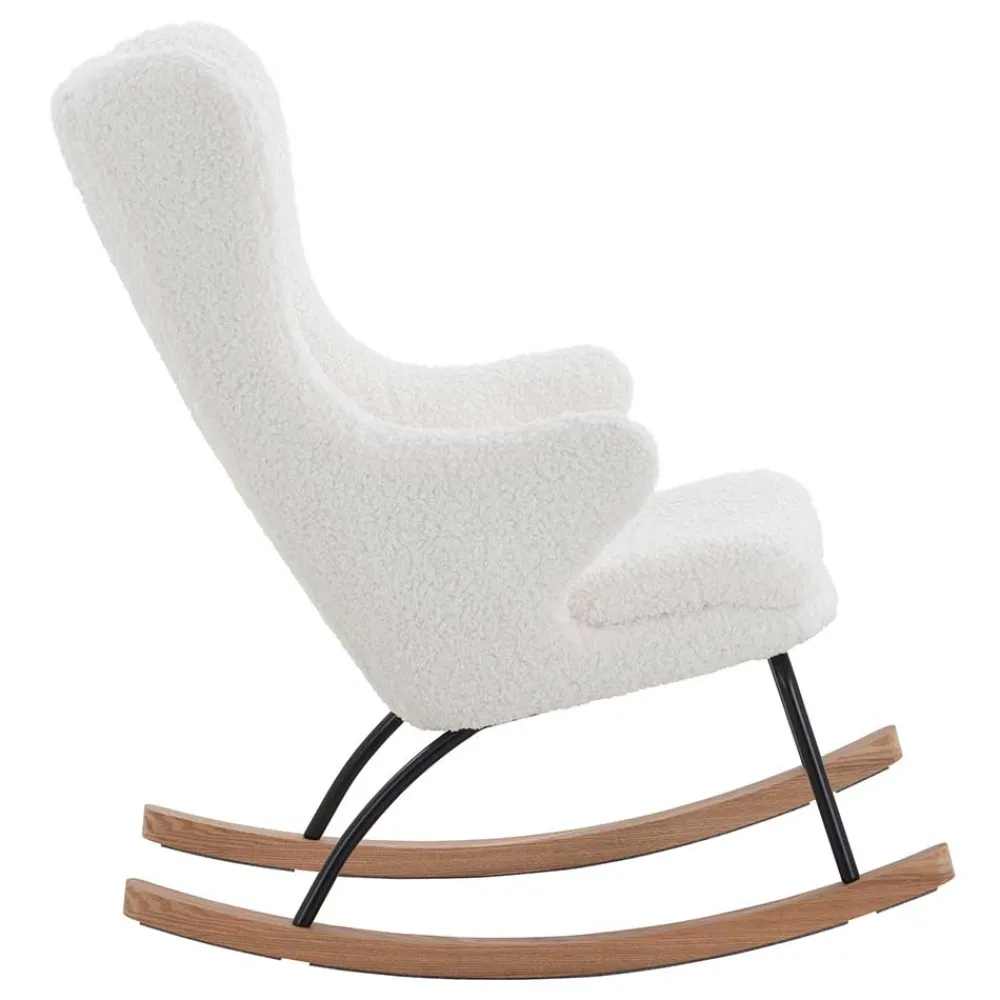 - Einladender Schaukelstuhl in Weiß, Eichefarben und Schwarz
