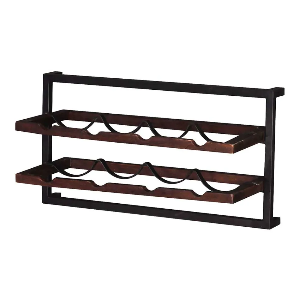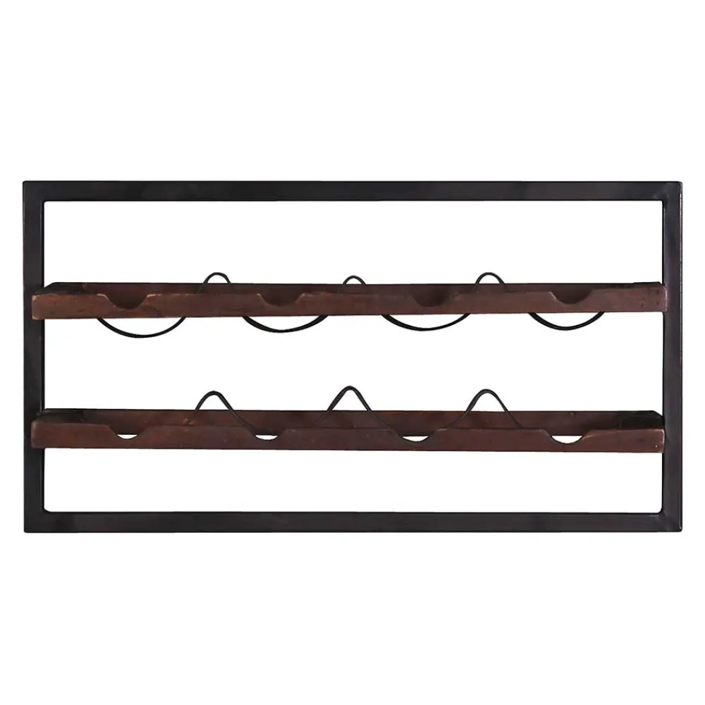 - Attraktives Hänge-Weinregal in Teak antik Dunkelbraun und Schwarz