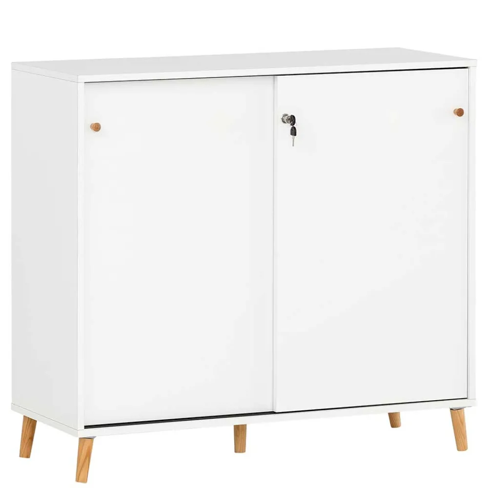 - Smarter Aktenschrank in Weiß und Eichefarben