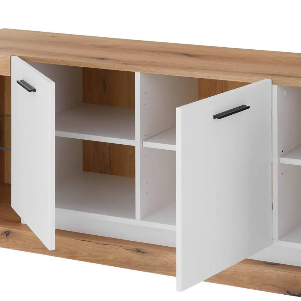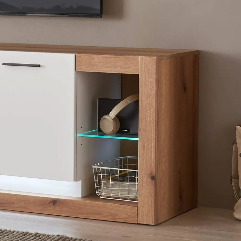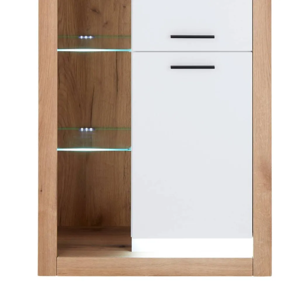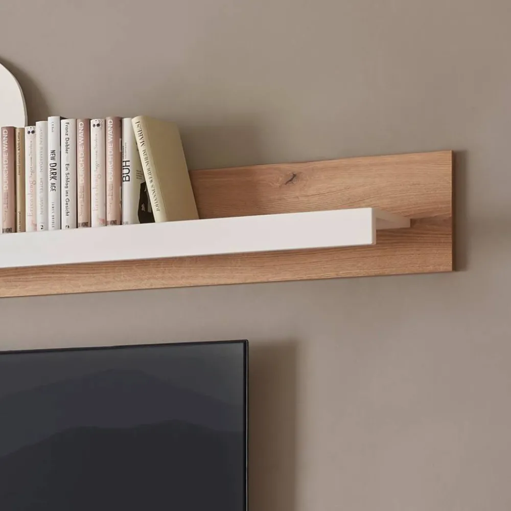 - Schicke Wohnwand in Weiß supermatt und Eichefarben