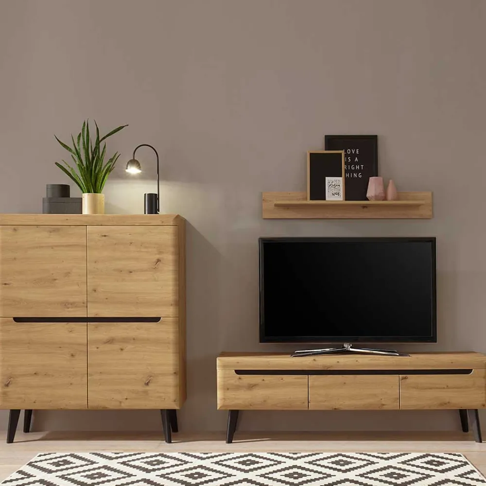- Junge Wohnwand in Wildeichefarben und Schwarz