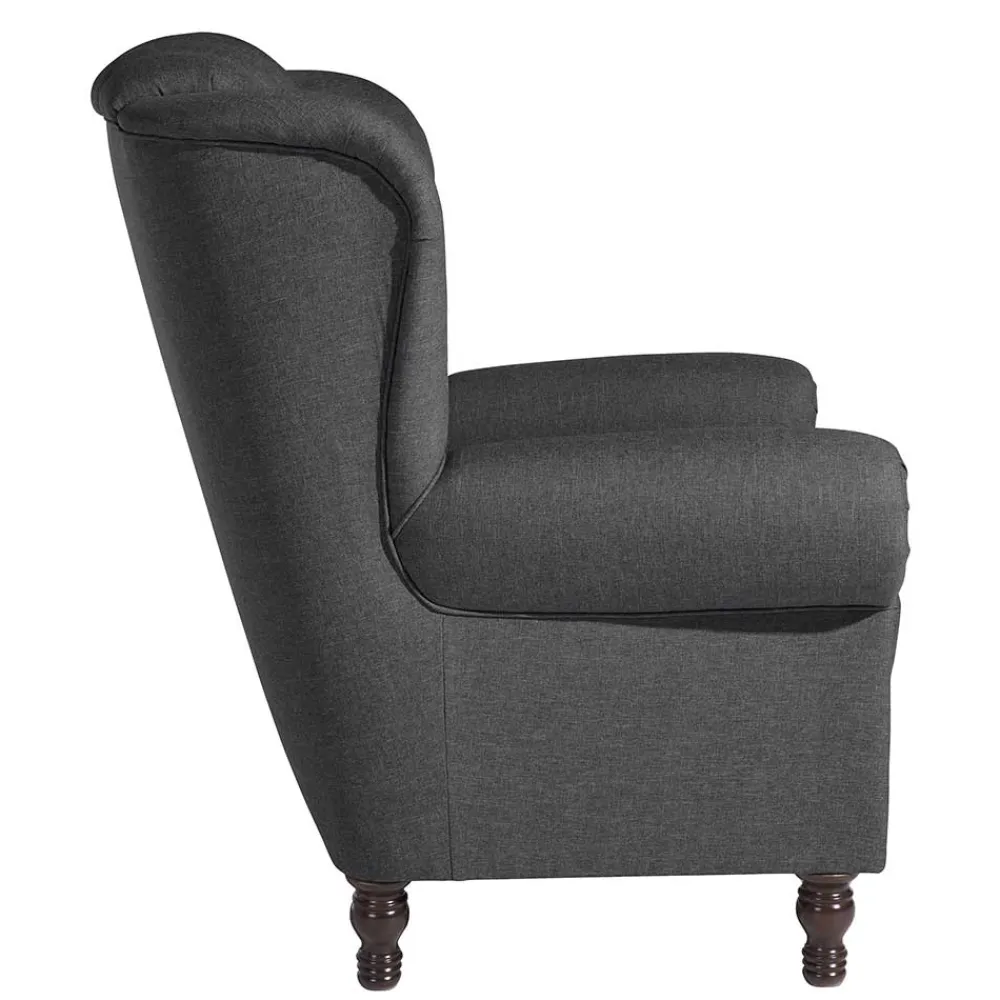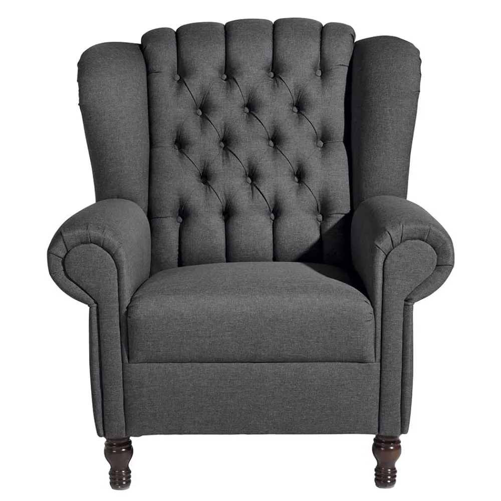 - Markanter Sessel und Dunkelgrau und Nussbaumfarben