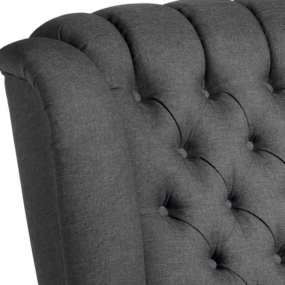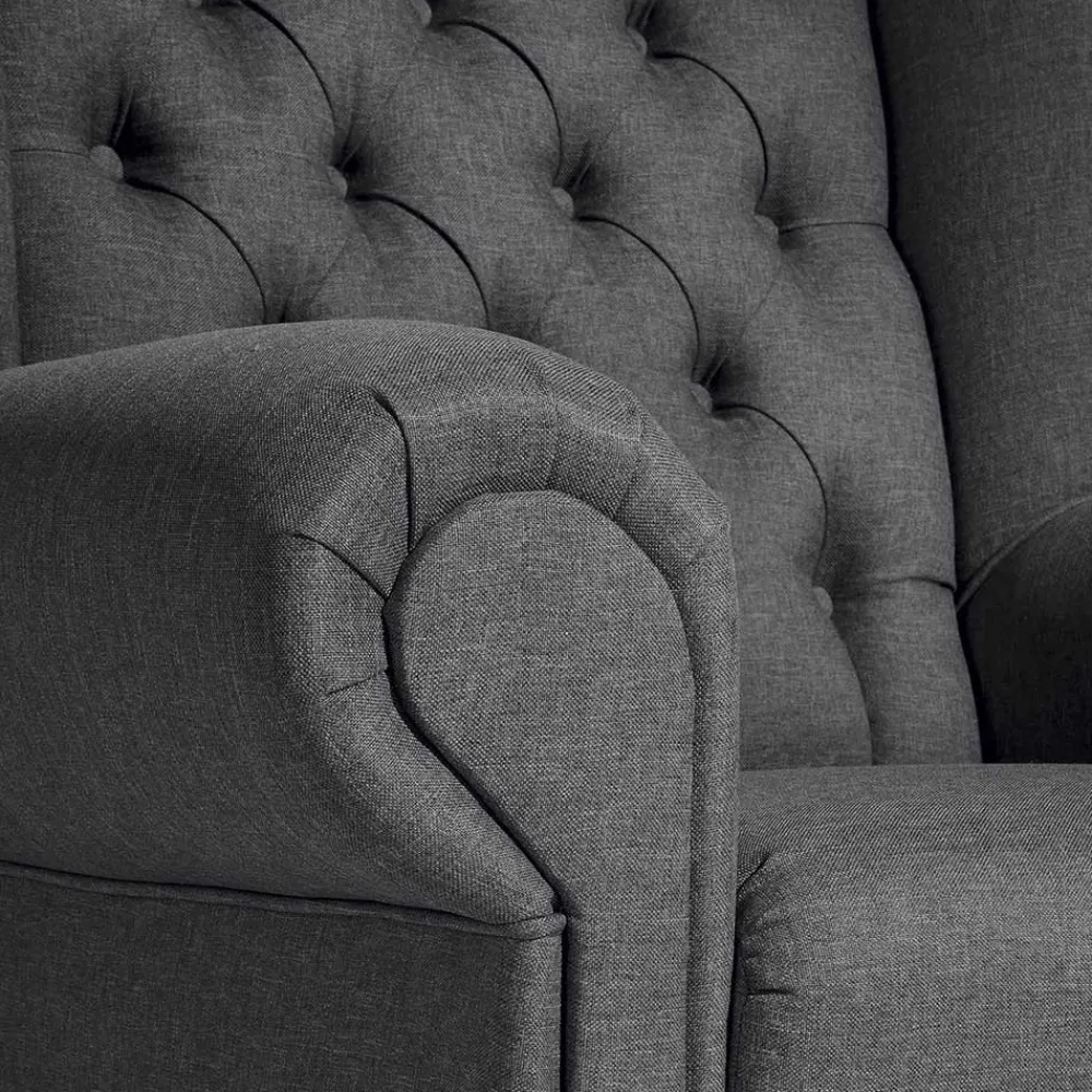 - Aufwändige Gestaltung mit seitlichen Ohren und Knopfsteppungen