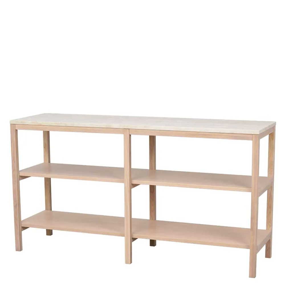 - Lackiertes Fußgestell in White Wash Optik aus massivem Holz, Böden aus echtholzfurniertem Holzwerkstoff