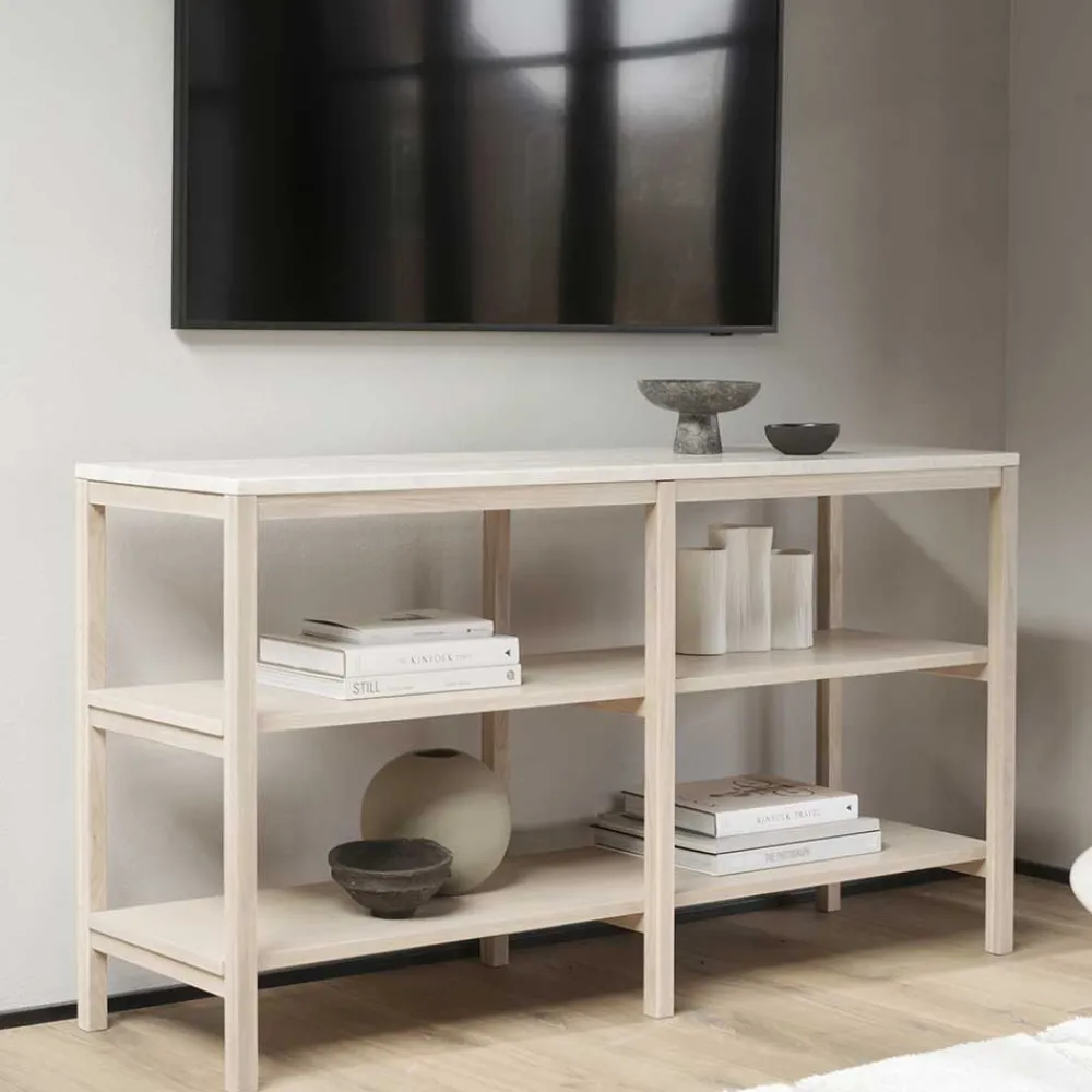 - Zeitgemäßes Regal in Eiche White Wash und Beige