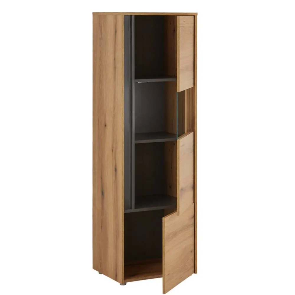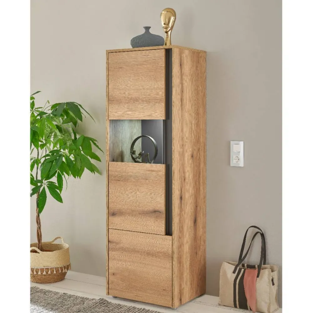 - Dekorative Vitrine in Wildeichefarben und Anthrazit
