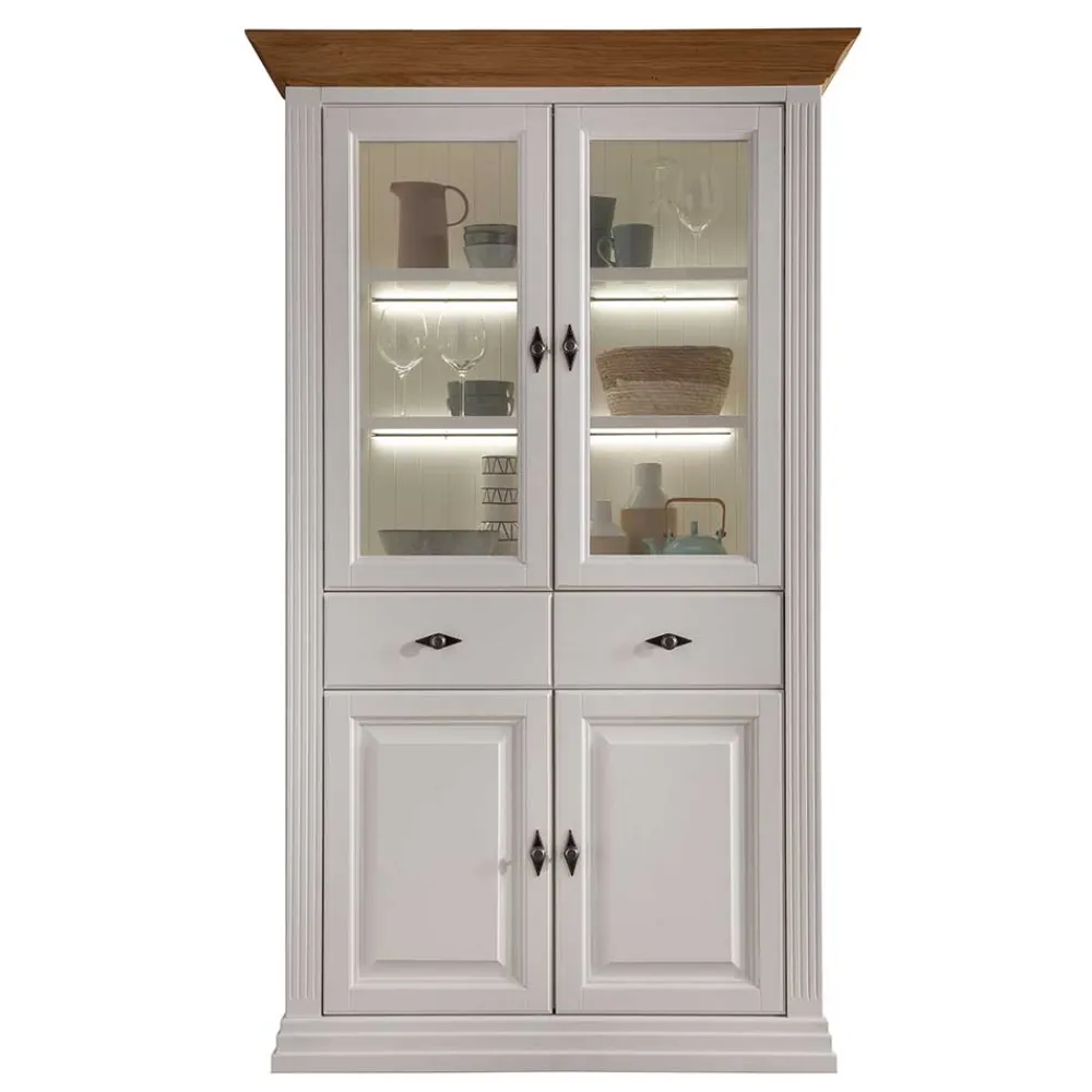 - Geräumiger Vitrinenschrank in Weiß und Eichefarben