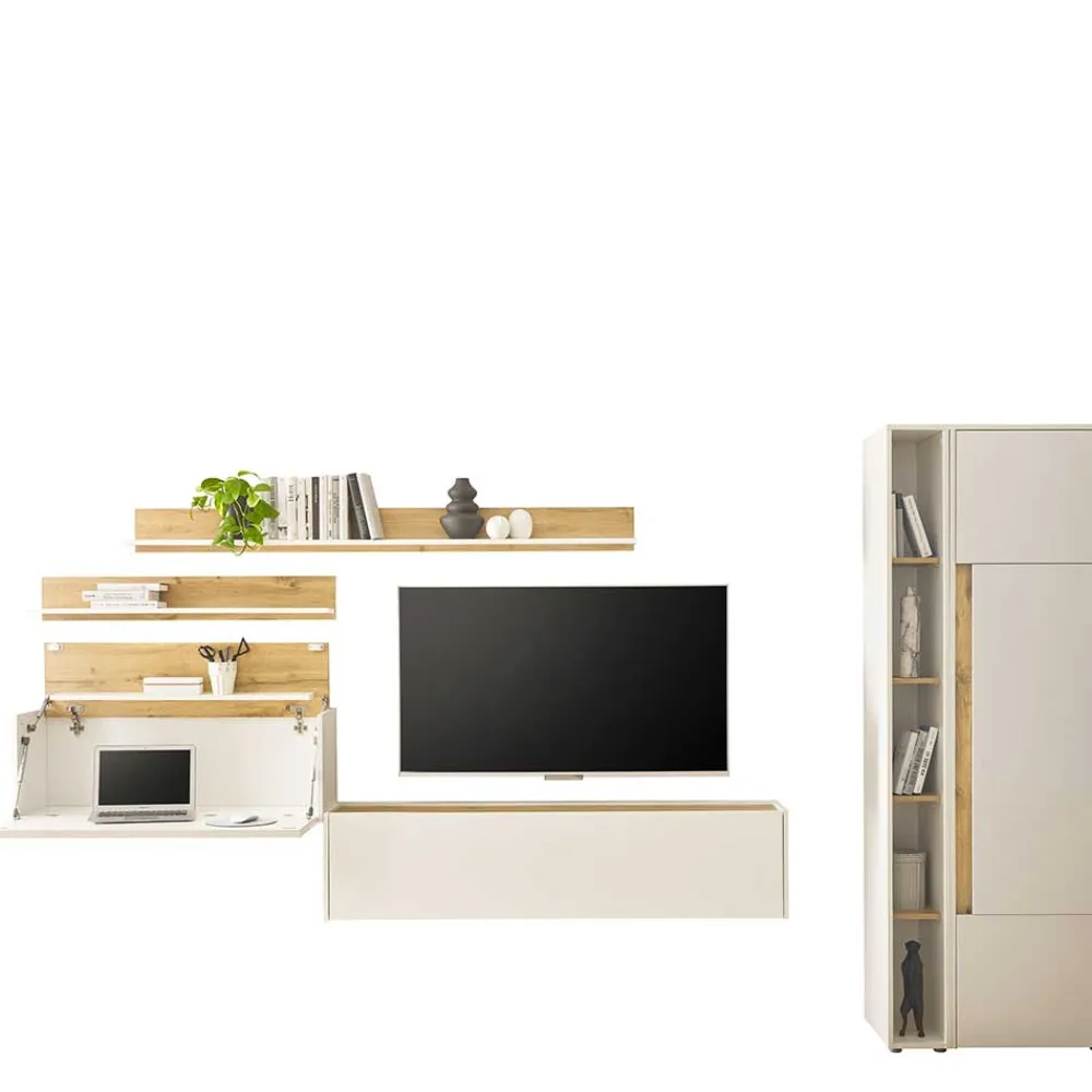 - Aktuelle Wohnwand in Weiß und Wildeichefarben