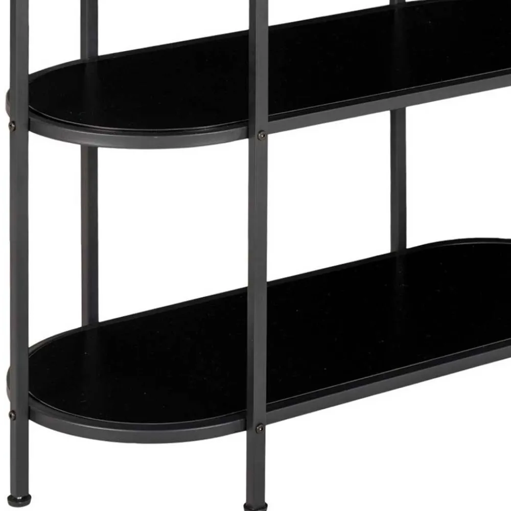 - Aus stabiler Spanplatte (Böden) und Stahl (Gestell) hergestellt