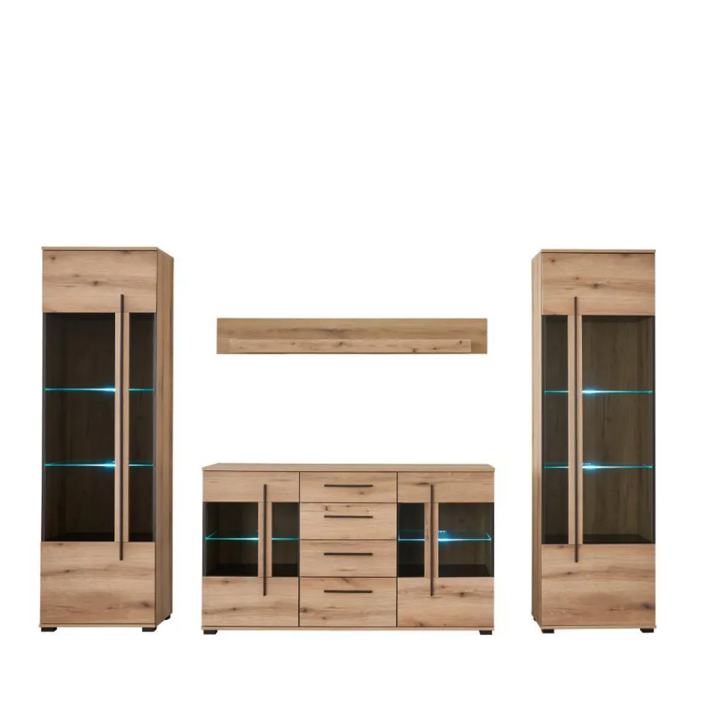 - Auf den Bildern aufgestellt mit einem Abstand von ca. 10 cm, Gesamtbreite 290 cm, Möbel eng zusammengestellt mit einer Breite von ca. 270 cm
