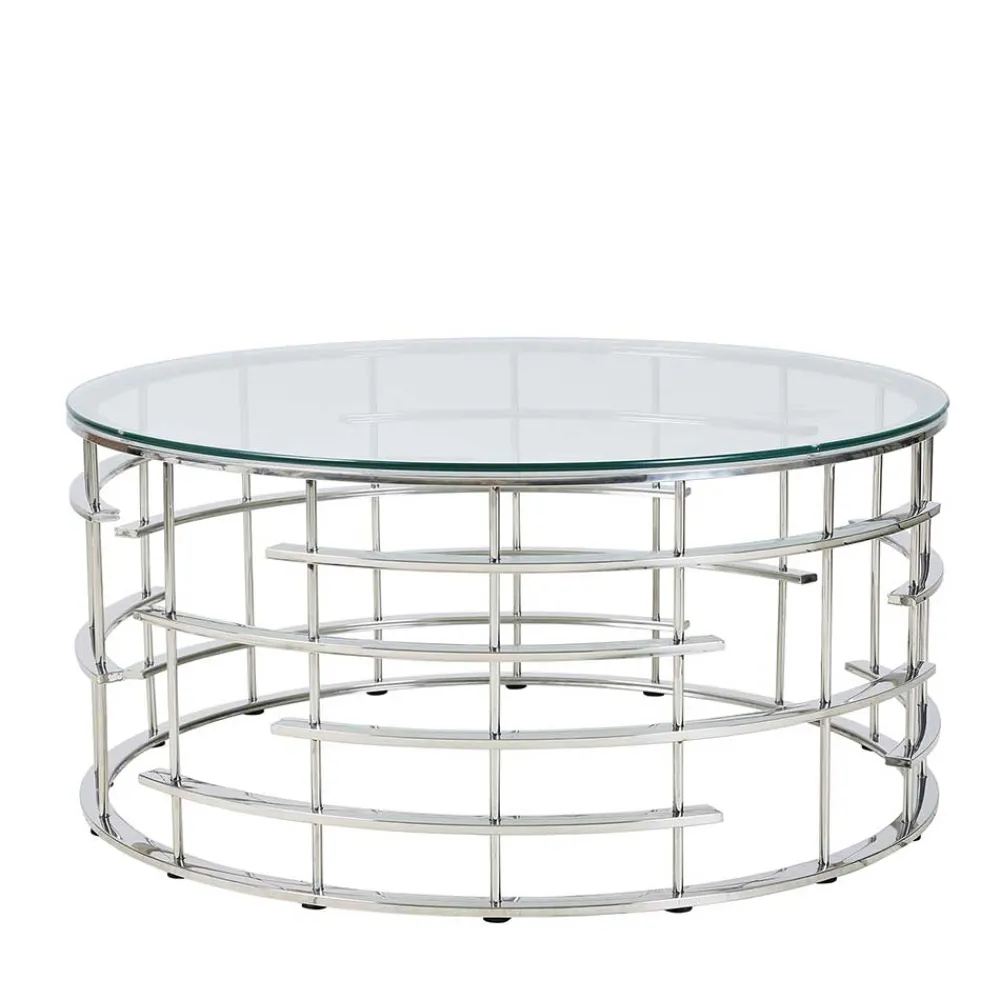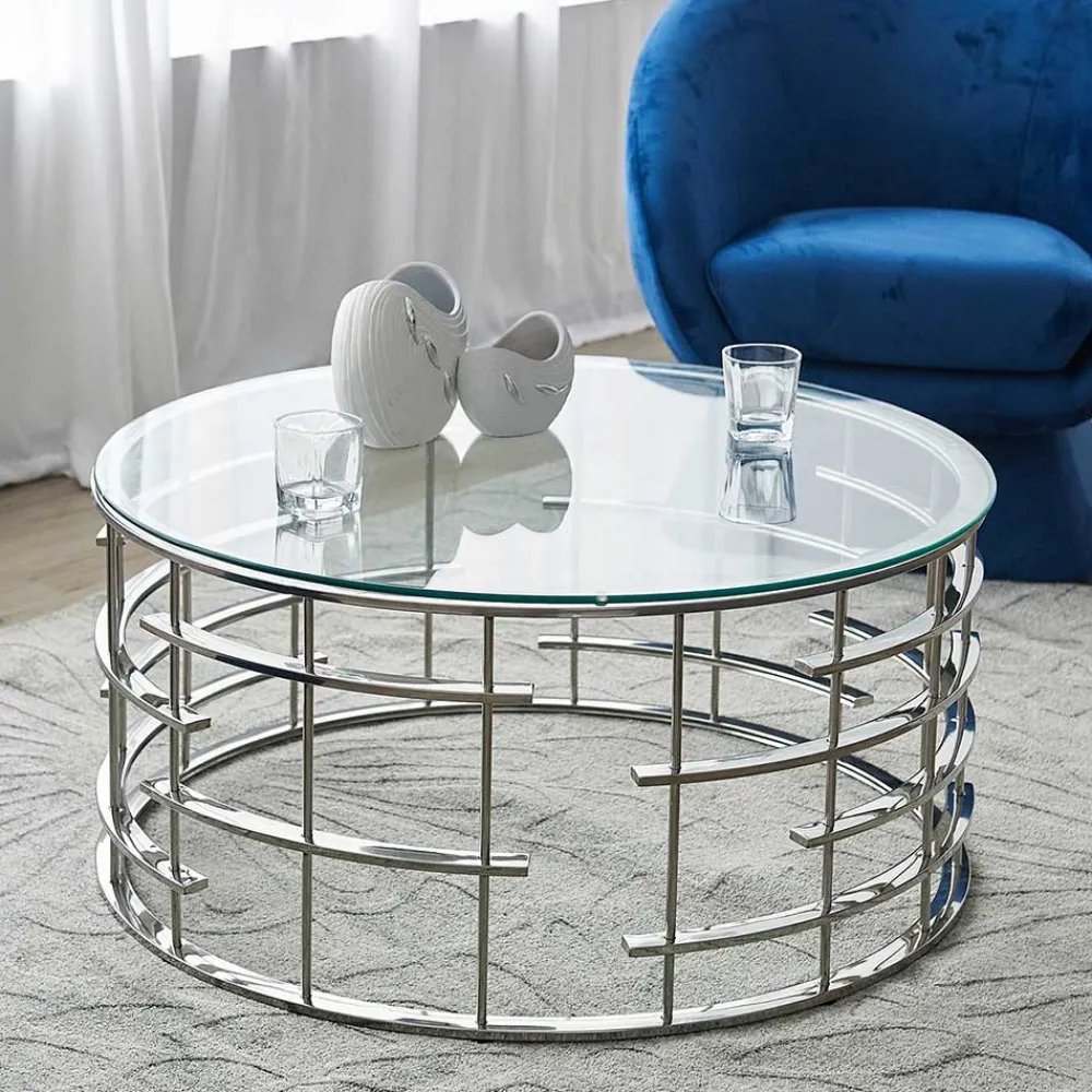 - Eleganter Couchtisch in Silberfarben und Transparent