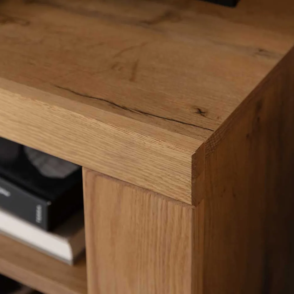 - Der Kabeldurchlass an der Rückwand des TV Boards sorgt für Ordnung
