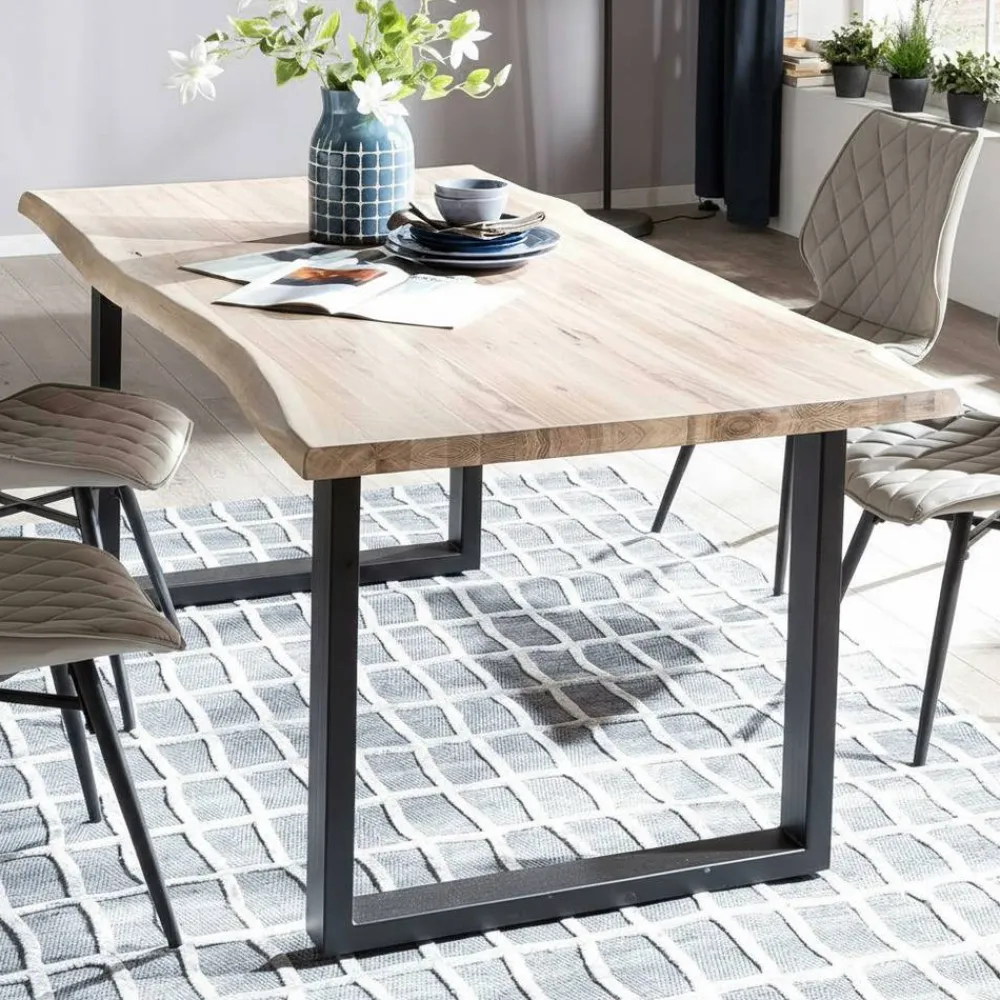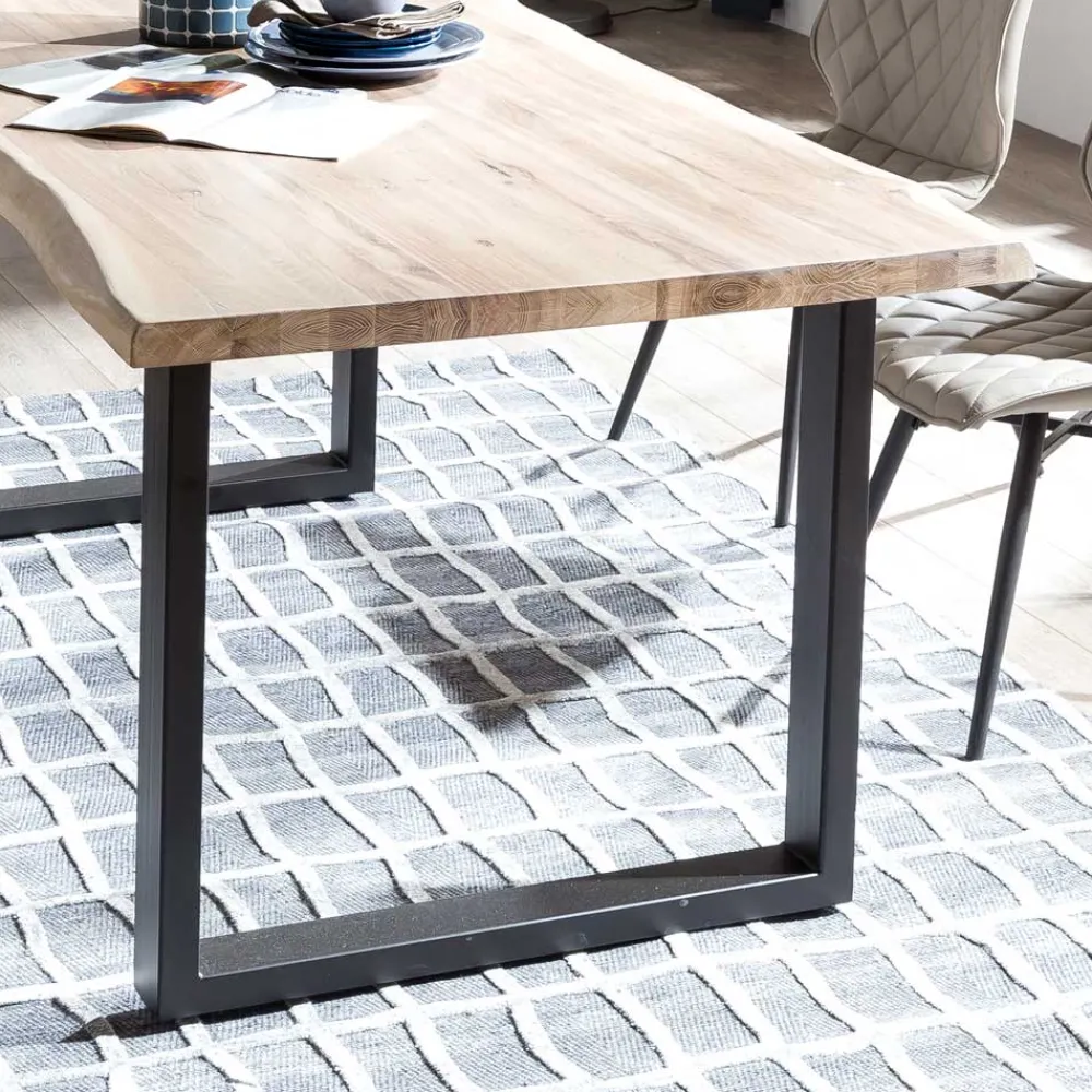 - Hervorragender Esstisch in Wildeiche White Wash und Schwarz