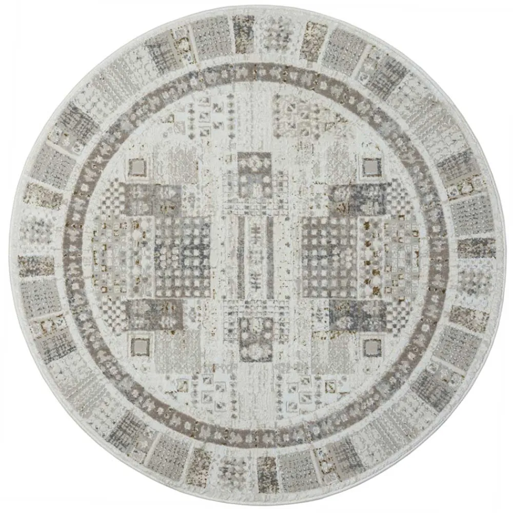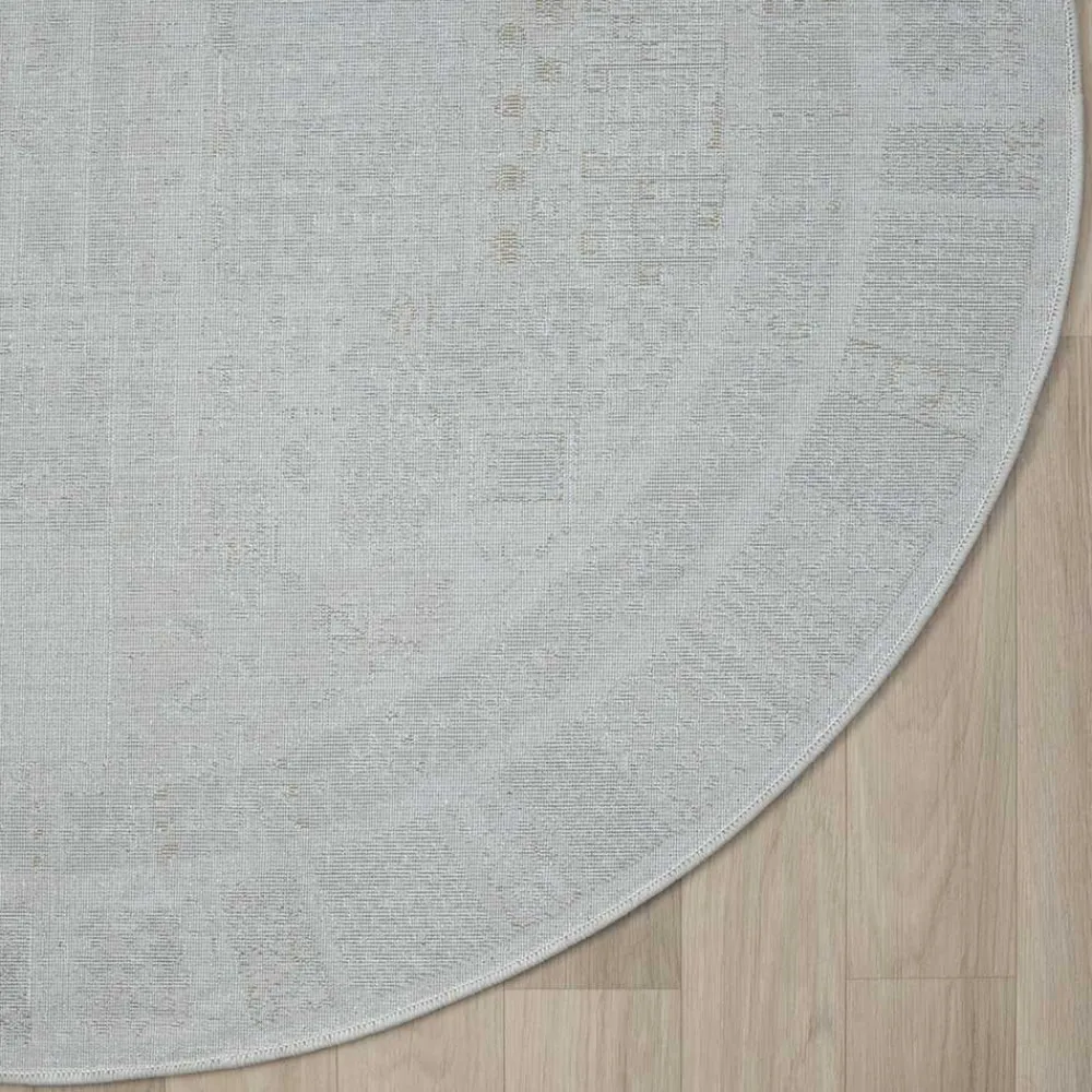 - Runder Teppich in Hellgrau und Cremefarben