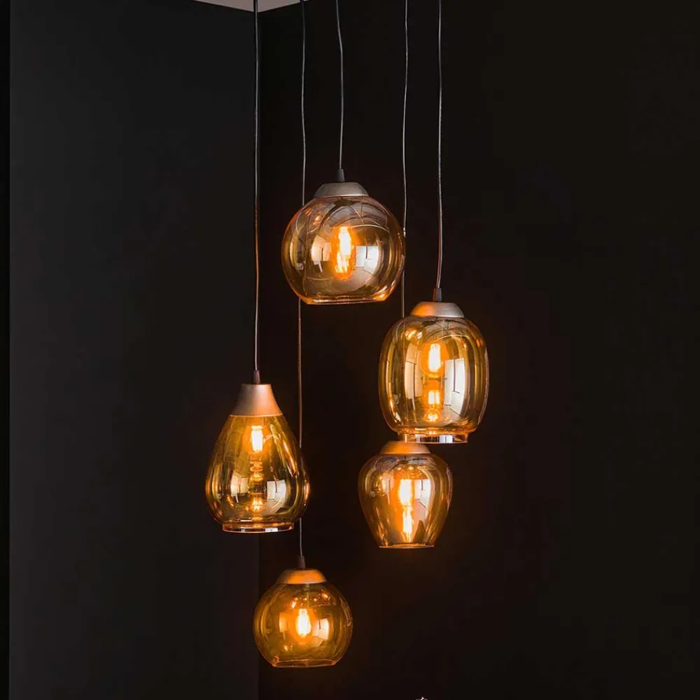 - Lieferung ohne Leuchtmittel, fünf Fassungen E27, max. 60W, Schutzklasse IP20