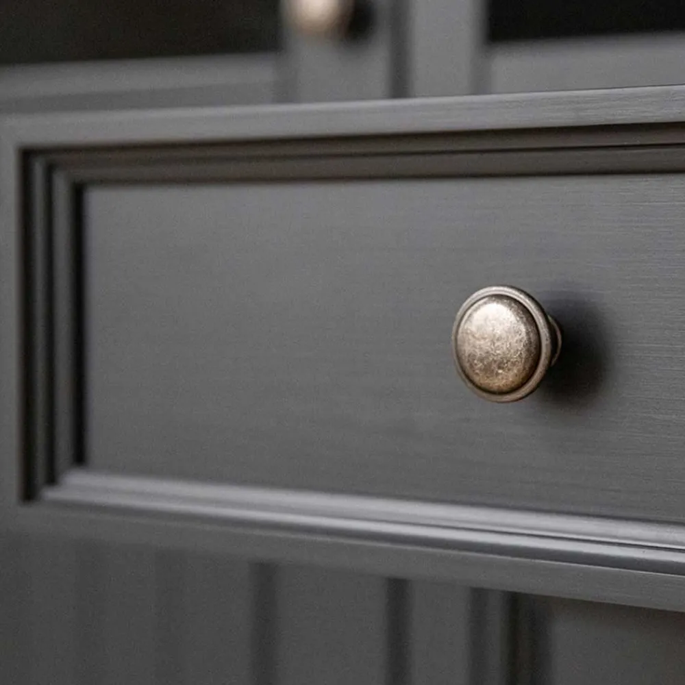 - Runde Metall-Knopfgriffe in Altsilberfarben
