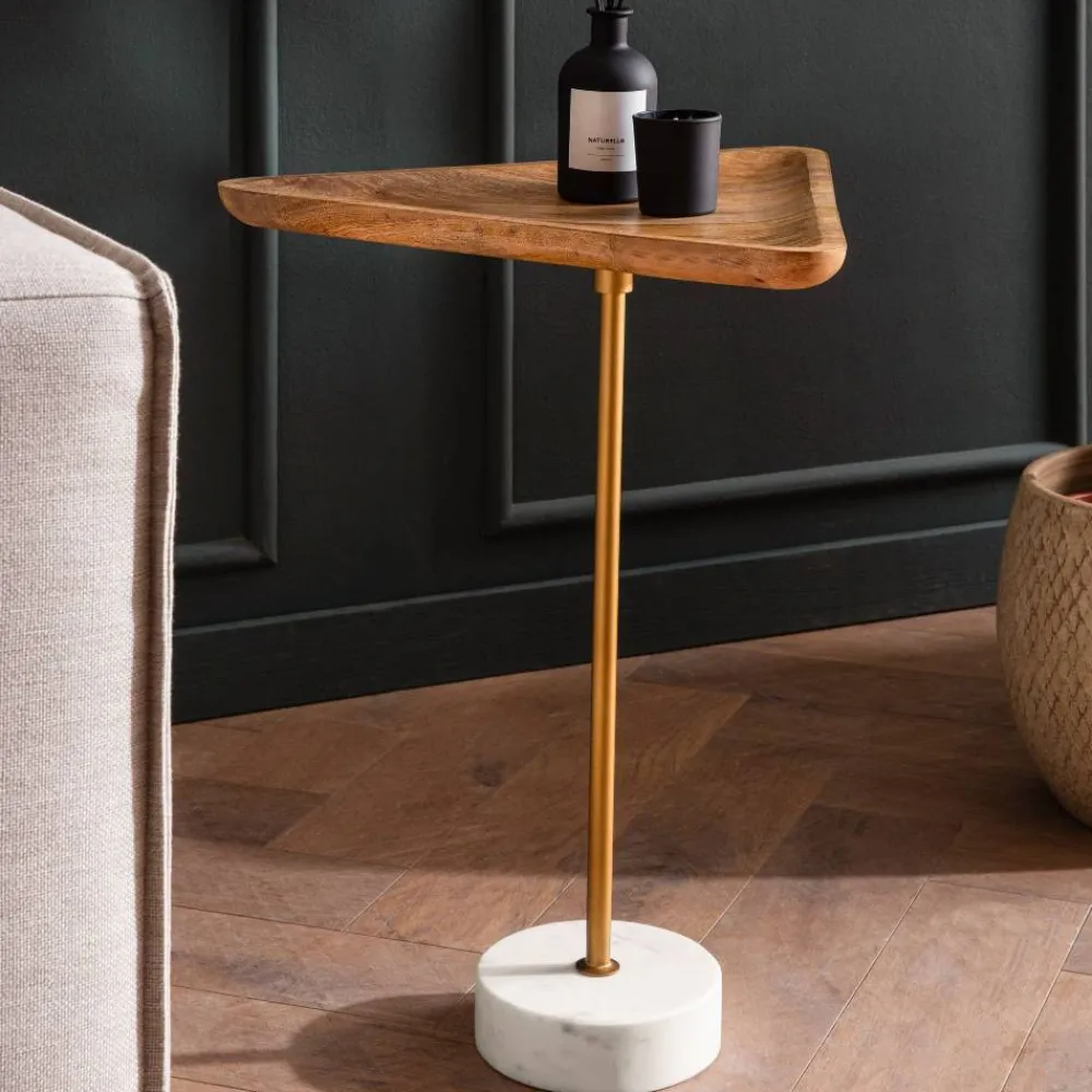 - Eleganter Beistelltisch in Holz Naturfarben, Gold und Weiß